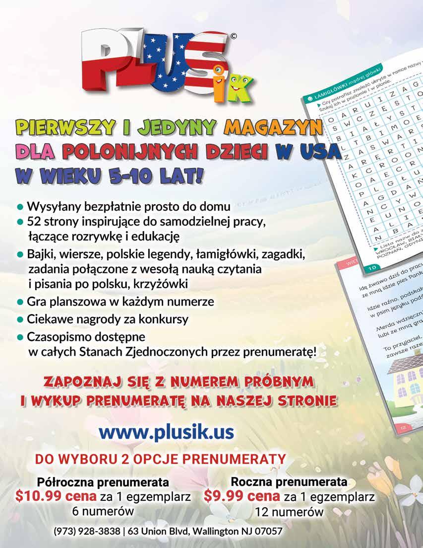 Rozwiązanie krzyżówki prześlij do nas e-mailem na adres ogloszenia@tygodnikplus. com lub na nasz adres pocztowy 63 Union Blvd, Wallington NJ 07057 wraz z podaniem imienia, nazwiska i dokładnego adresu. Wszystkie prawidłowe rozwiązania przesłane do dnia 11.07.24r. wezmą udział w losowaniu nagrody. Dane laureata obecnej krzyżówki zamieścimy na naszej stronie w dniu 18.07.24r. Nadesłanie przez Czytelnika rozwiązania krzyżówki oznacza, iż wyraża on zgodę na opublikowanie imienia, nazwiska oraz miejsca zamieszkania na liście laureatów. Rozwiązania prosimy przysyłać tylko raz. Duplikaty będą kasowane.