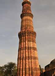 Minaar. Jego budowę rozpoczęto co prawda w 1199 roku, ale podwyższano jeszcze dwukrotnie, w 1368 i 1503 roku. Jest to nie tylko najstarszy ale i – z racji bogato zdobionych ścian–najciekawszy obecnie minaret na terenie Indii. Sylwetkę minaretu urozmaicają wysunięte „balkoniki”, dekoracja ścian zaś to przede wszystkim kaligraficzne teksty ze świętej księgi Koranu. Wokoło wieży stoją jeszcze resztki murów, z jedyną zachowaną do dzisiaj bramą. Kiedy odwrócimy na chwilę uwagę od ruin i skierujemy wzrok ku niebu, ujrzymy stada sępów, czasami orła i krzykliwe pary kolorowych papużek.