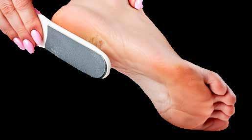 Zestaw obowiązkowy do codziennej pielęgnacji stóp to pumeks i krem nawilżający. Po użyciu należy go dokładnie spłukać, tak aby nie gromadziły się na nim bakterie. Jeśli skóra na naszych piętach jest mocno zrogowaciała możemy użyć ceramicznej tarki