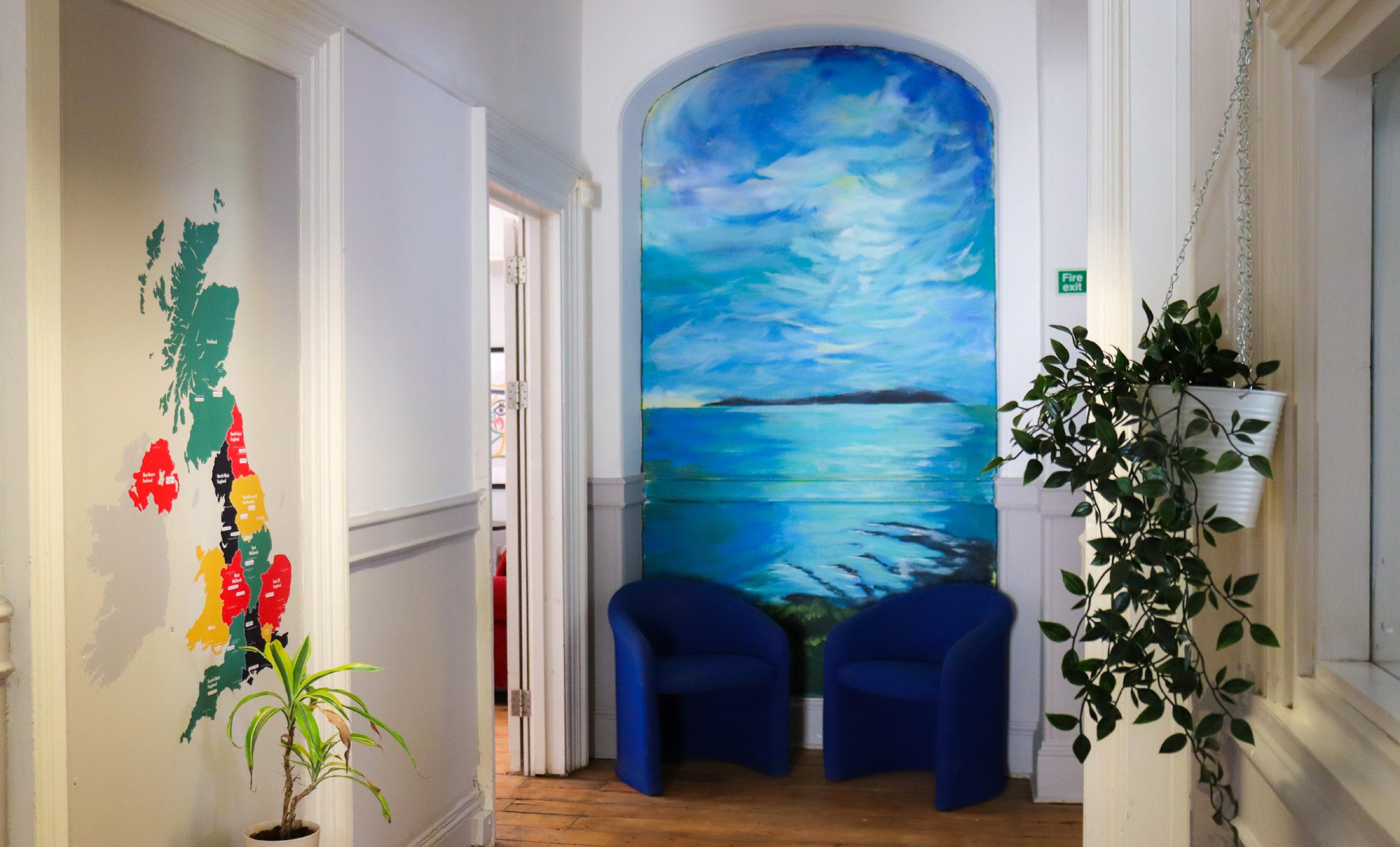 The centre is not just about functionality – it’s also a place that sparks creativity and inspiration. At the heart of this transformation is a beautiful mural, painted by a talented artist and Old Plymothian (OPM) Katy Miles. The mural reflects the energy and ambition of our students, adding a splash of colour and artistic flair to the space.