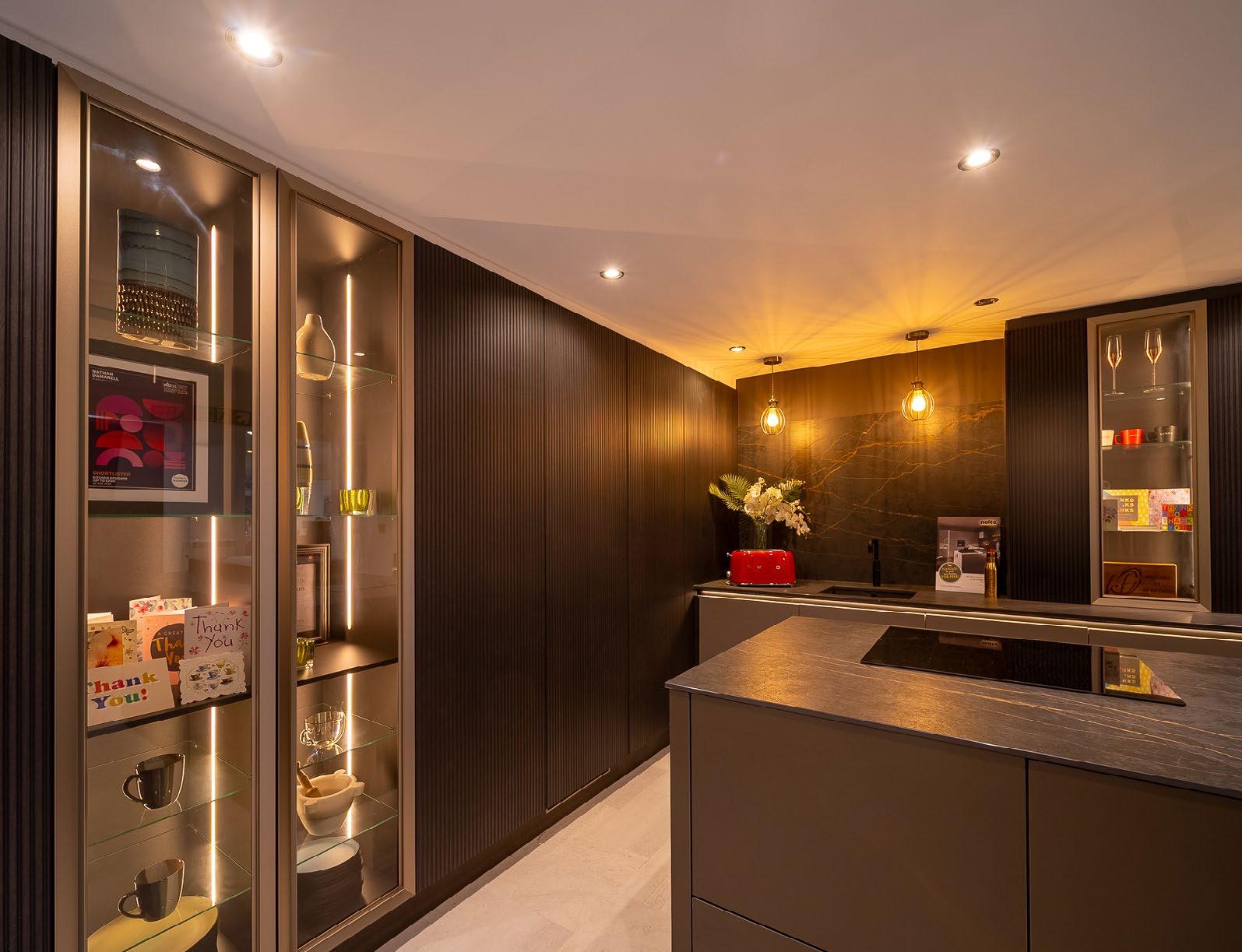longevity. Features include variable working heights, allowing the kitchen to be tailored ergonomically to the user, while also increasing usable storage space. Nolte’s colourmatched carcasses ensure the internal cabinetry matches the external finish—creating a consistent, premium look