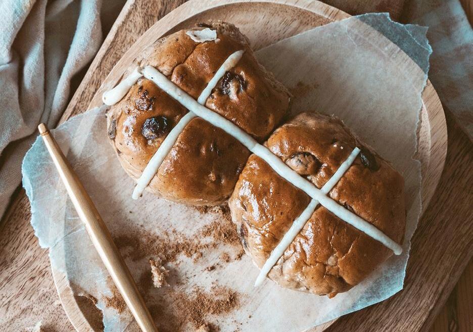 FOUR Heat the oven to 200C/180C fan/gas 6. Brush the buns with the reserved egg. Tip the remaining starter into a piping bag fitted with a small nozzle, and pipe crosses onto the buns. Bake for 20-25 mins until light brown. Leave to cool slightly and serve.