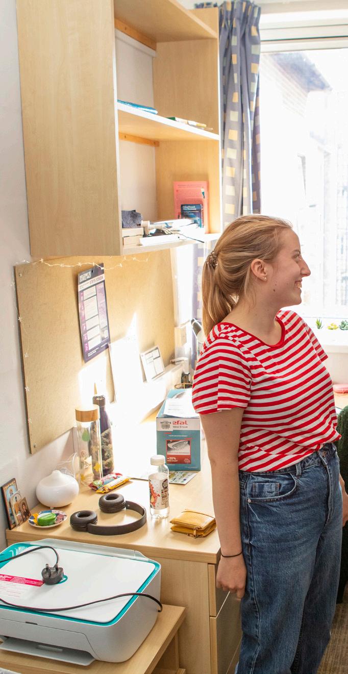 “I wanted to live on campus to be close to everything. There’s loads of storage, a desk and a pinboard, which I used to put photos up. The Accommodation team ran loads of socials and competitions all year too. I honestly loved living in halls, and I don’t think I know anyone who wouldn’t say the same.”