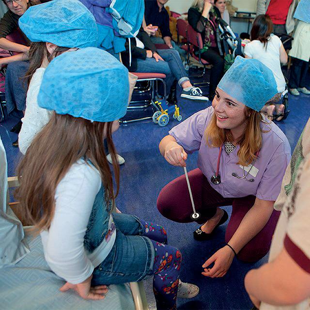 Our Teddy Bear Hospitals are most volunteers’ favourite event. We go into primary schools and do a series of activities, bandaging up the children's teddies, teaching hand washing, asking ‘what's in a doctor's bag?’ and talking about bones and hearts. Not only are we introducing the idea that becoming a doctor is a possibility for all children from an early age but also improving wider health literacy and access to other healthcare courses such as our diagnostic radiography programmes. We take part in a range of other events for secondary school students, including basic life support workshops and careers fairs.
