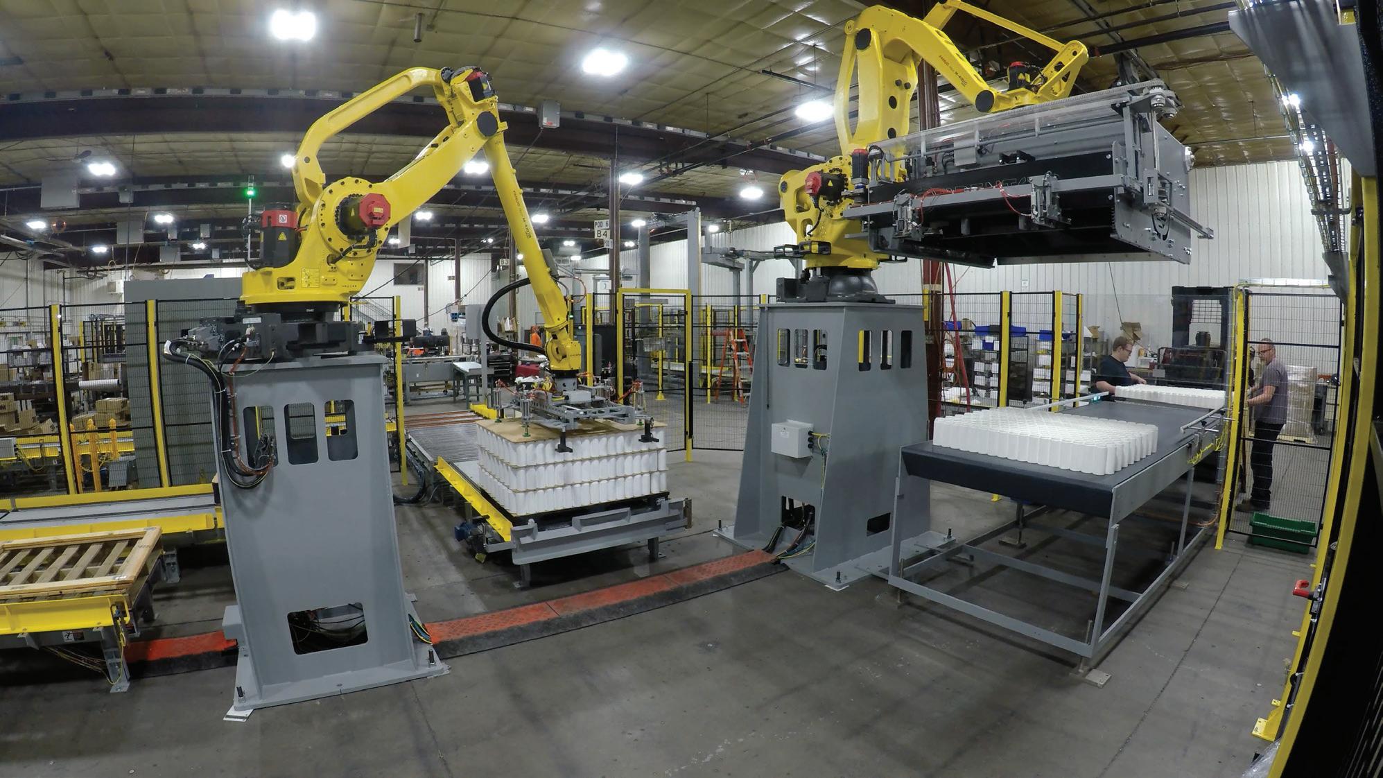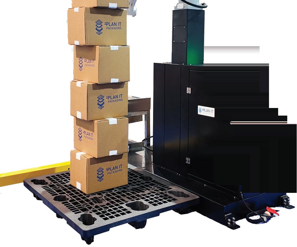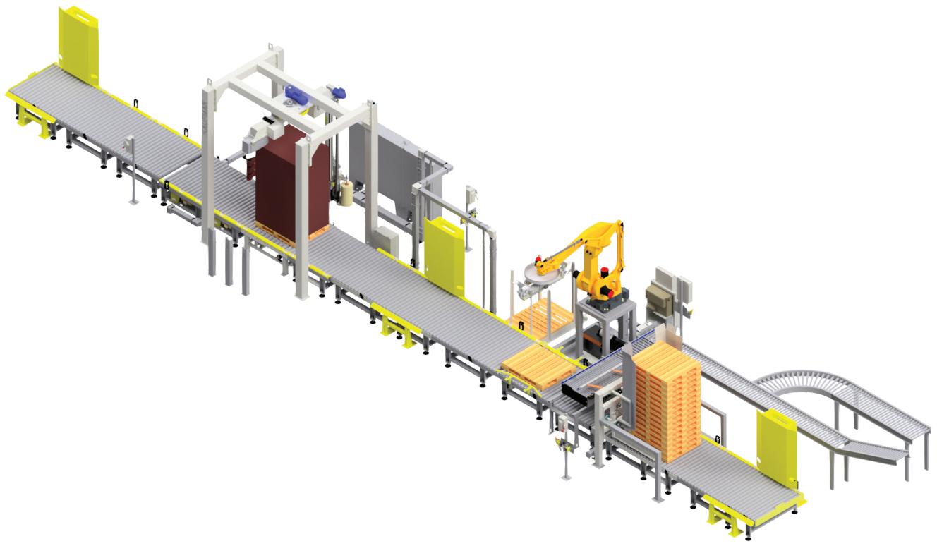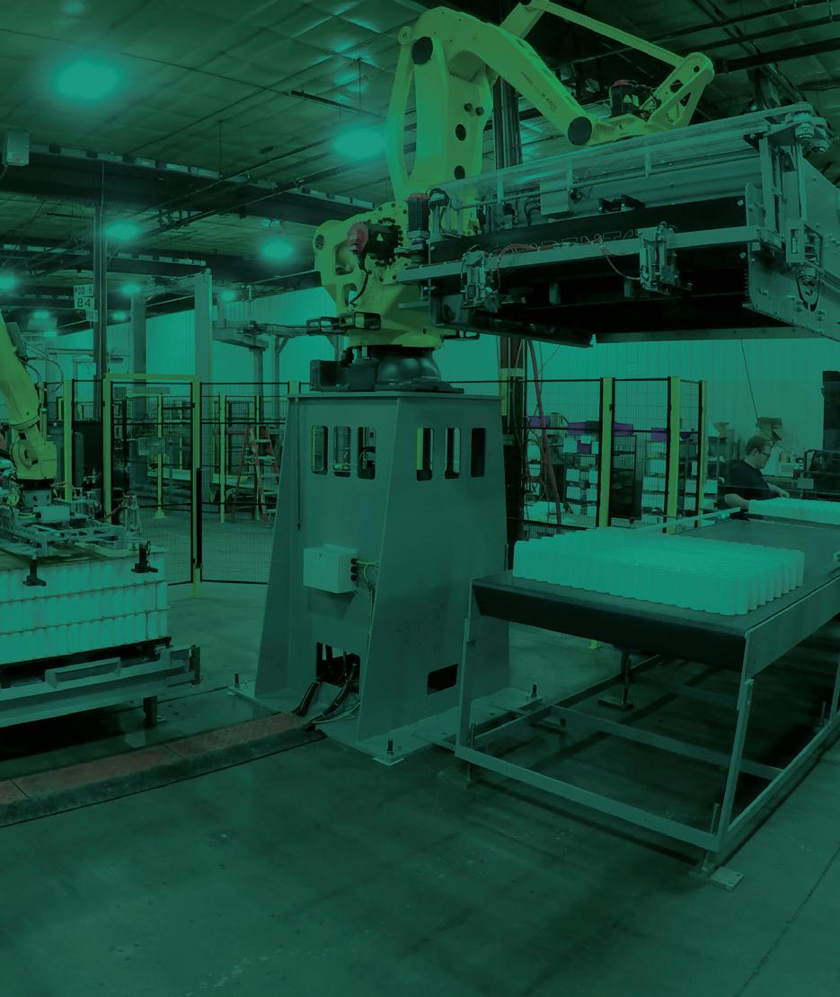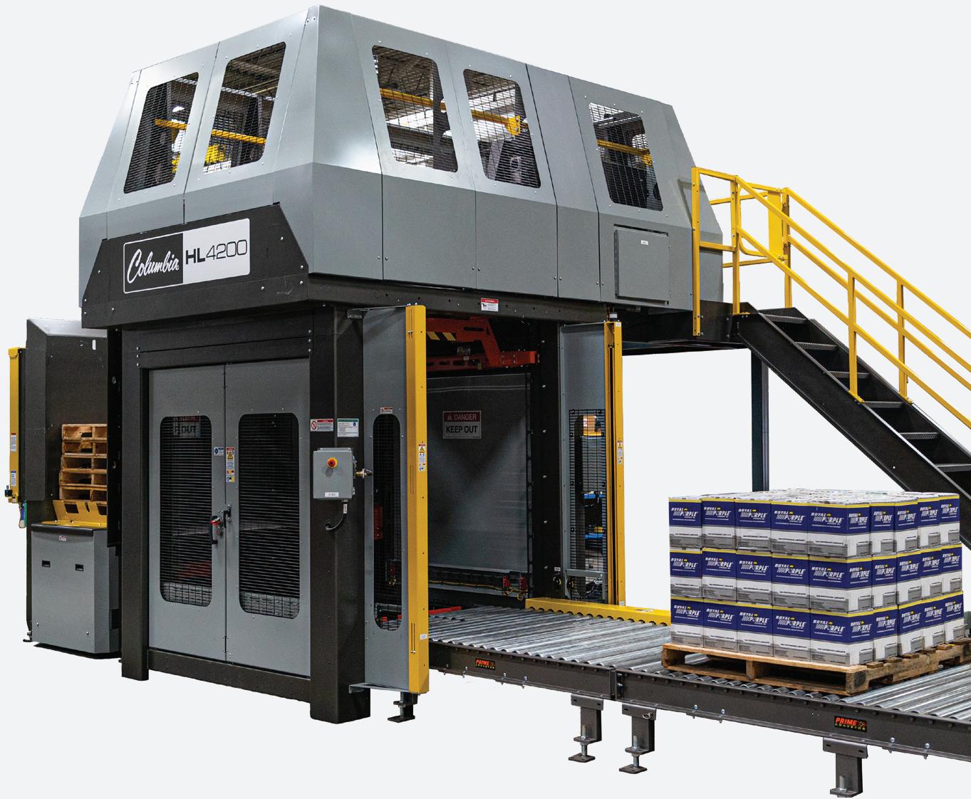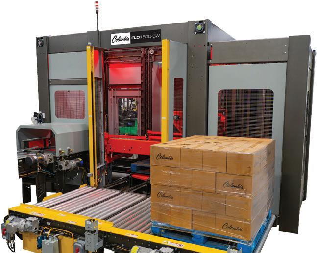 Columbia Machine’s FLD1500-SW is a high-performance palletizer with a fully integrated stretch wrapper that enables simultaneous “stack and wrap” load building within a 90-square-foot footprint to maximize ef ciency in space-constrained facilities. Columbia Machine pwgo.to/9036