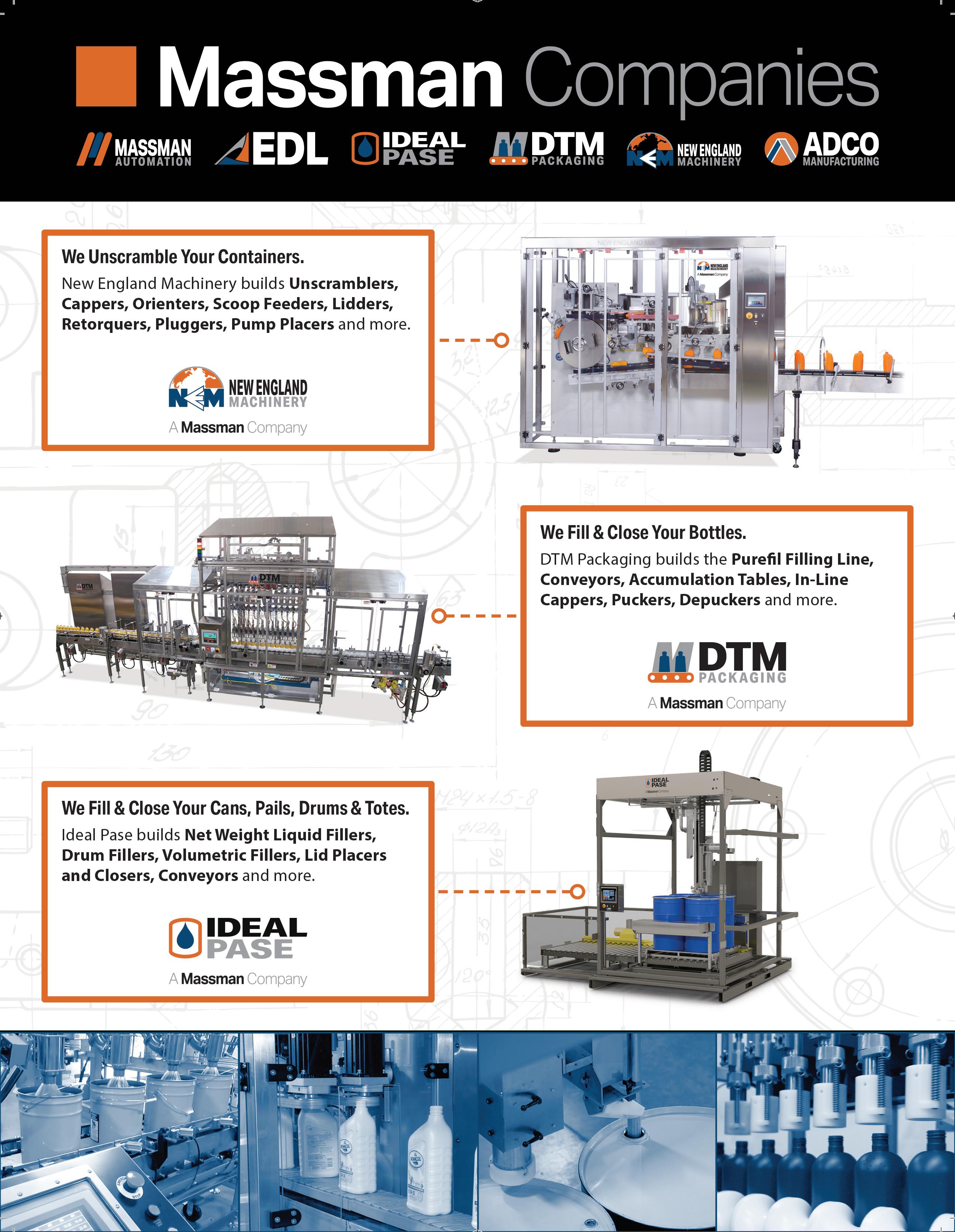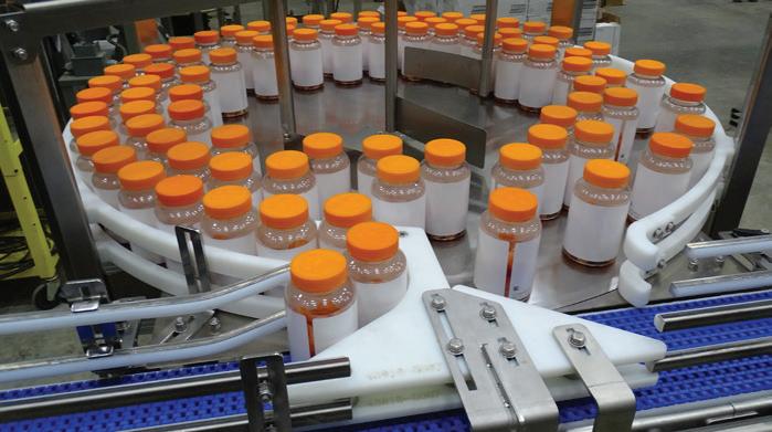 Specialty Blends runs three different PET bottle formats on a new line that culminates in a tray packing/shrink bundling system featuring the rst application of single-point lane adjustment.