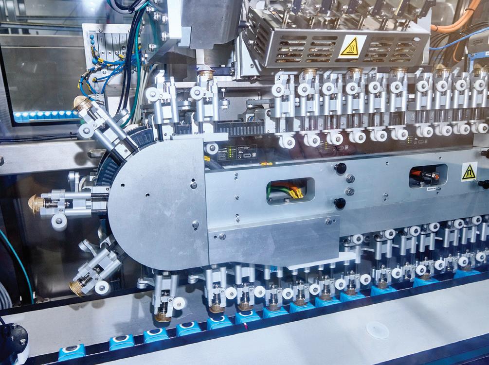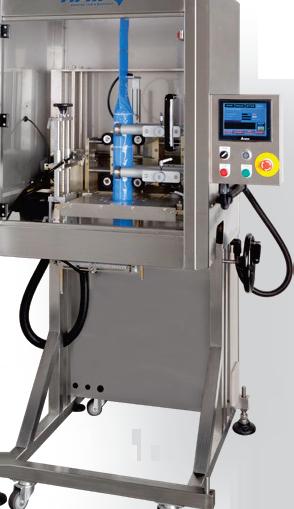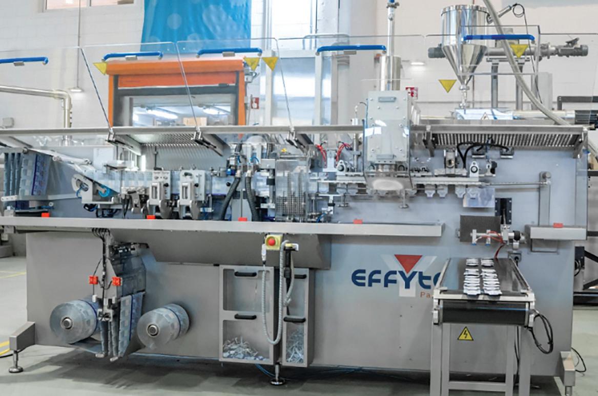 Effytec USA’s Model HB 15, which can switch between powder and liquid applications, delivers up to 90 ppm (simplex mode) or 180 ppm (duplex) and offers exible production of twin, shaped, and perforated pouches within a compact, sanitary design.