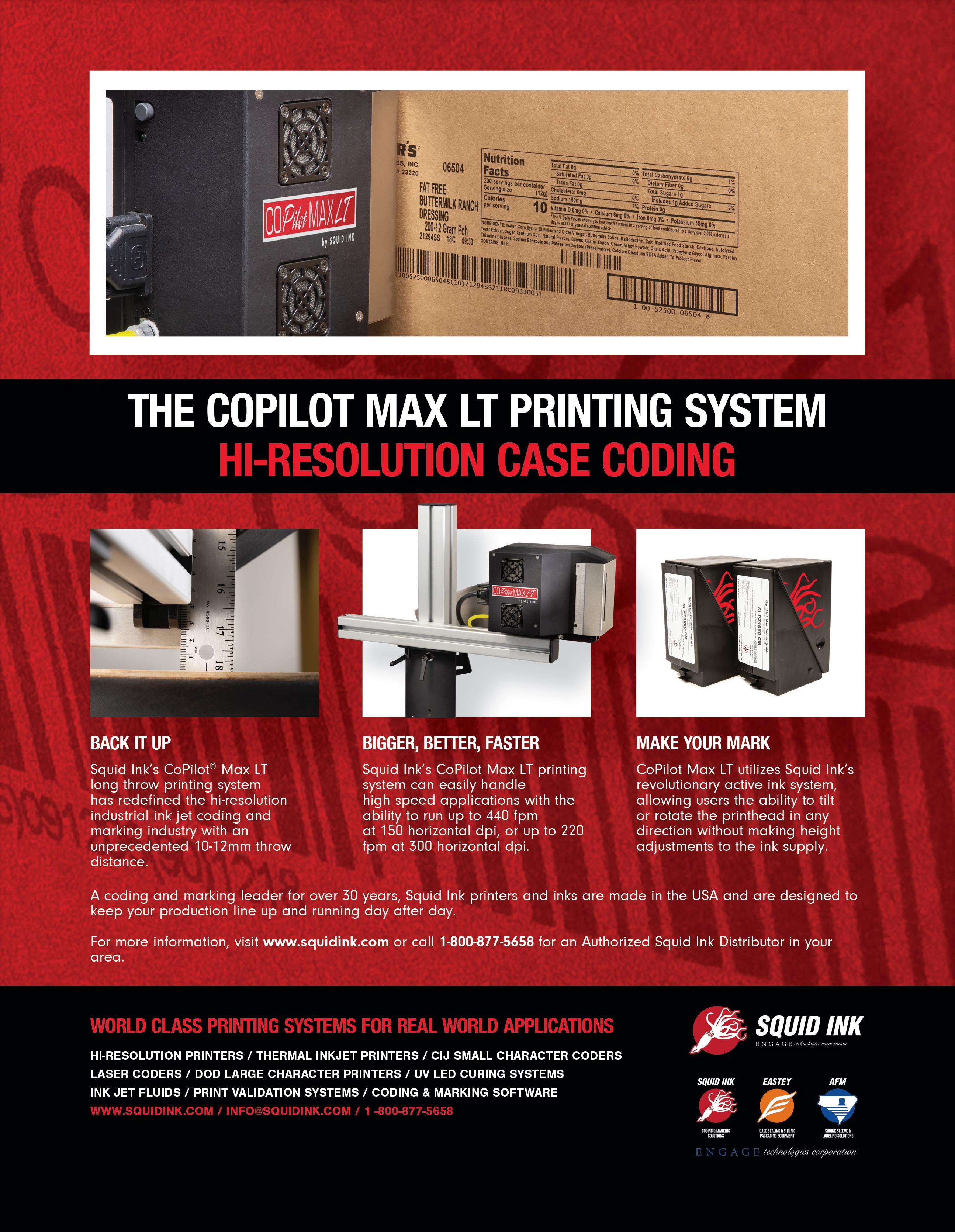 Matthews Marking Systems’ high-speed MPERIA Axian XIJ AX1000 Series combines Continuous Inkjet (CIJ) and Thermal Inkjet (TIJ) technologies in a single platform for crisp, highresolution markings on a variety of substrates with no solvent additives.