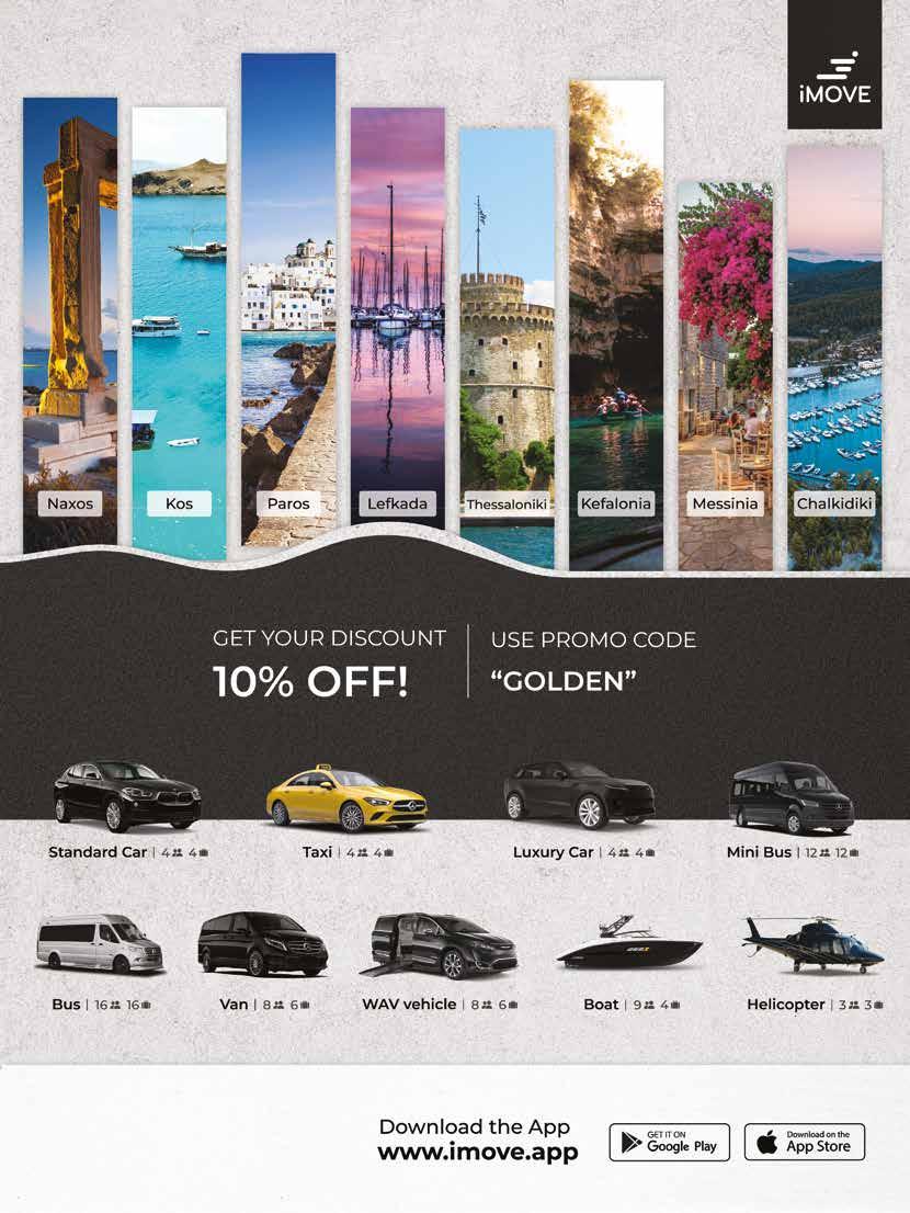 companion, of course! Golden Stars -the magazine you’re holding that will accompany you on your holiday this year. The following pages contain information to help you get to know the destinations, their people, events, culture and gastronomy, as well as featuring interesting interviews with celebrities and prominent figures. It offers a glimpse of what awaits you on the island, and is further proof of Golden Star Ferries’s commitment to providing unique services and benefits to its passengers.