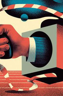 Greek statue, loose button falling down so then he’s naked, hands taking images with phones. an hourglass and a crying head statue.