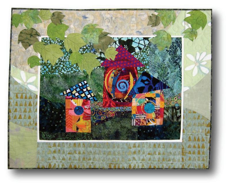by with hand-painted fabrics and batting, and free-motion quilting.