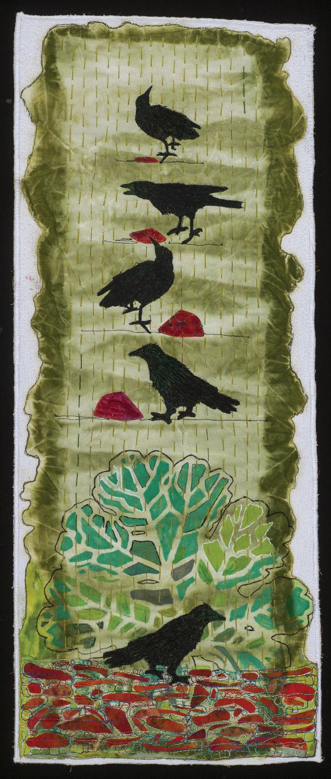 Hand-dyed, painted, raw-edge appliqued, stitched and quilted. Inspiration from a photo by Tom Wrublewski, with permission.