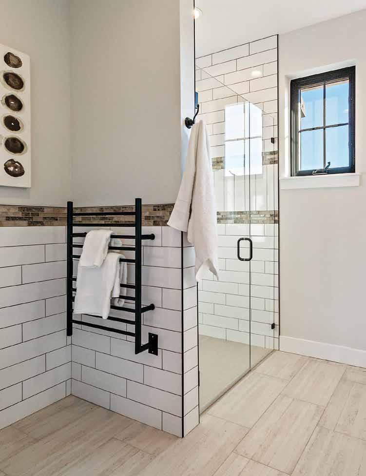 A bathroom’s color palette can also play a role in your wellness goals. Warmer shades like red and orange enhance energy while cooler colors like green and blue can be calming.