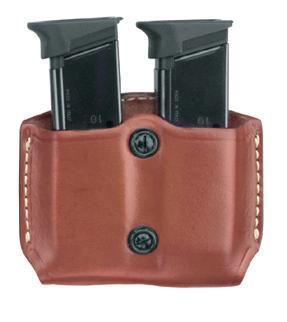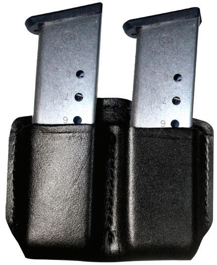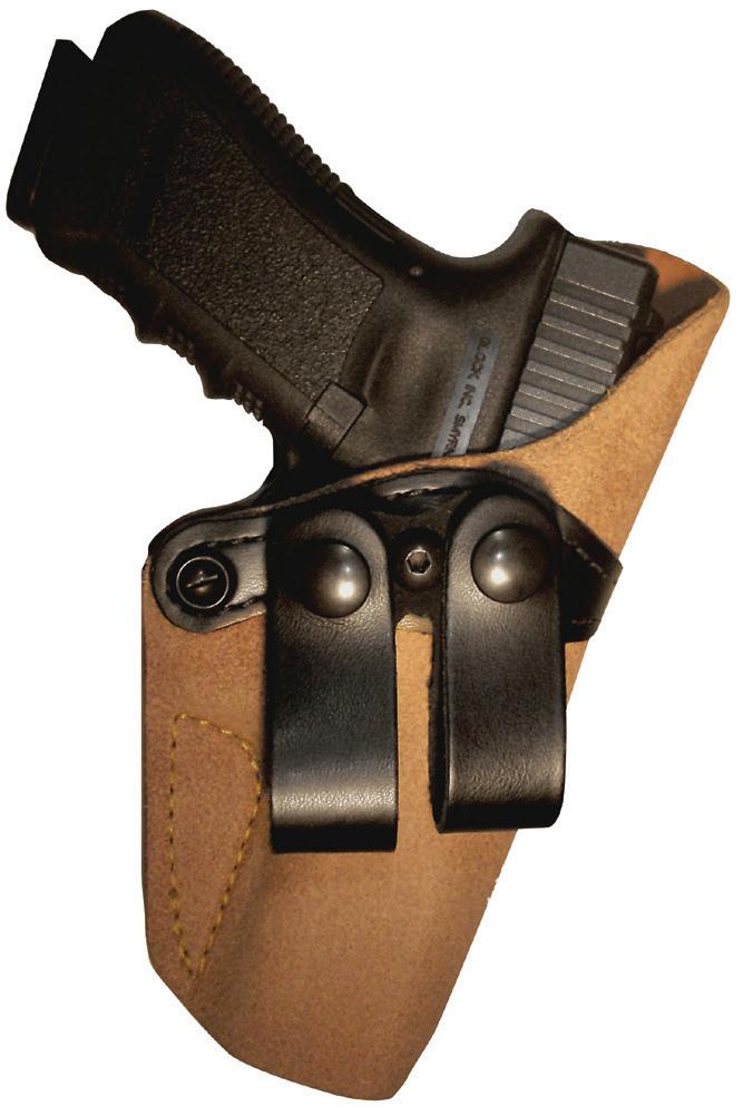 •Leather straps snap around belt to give better stability than a clip-on holster
