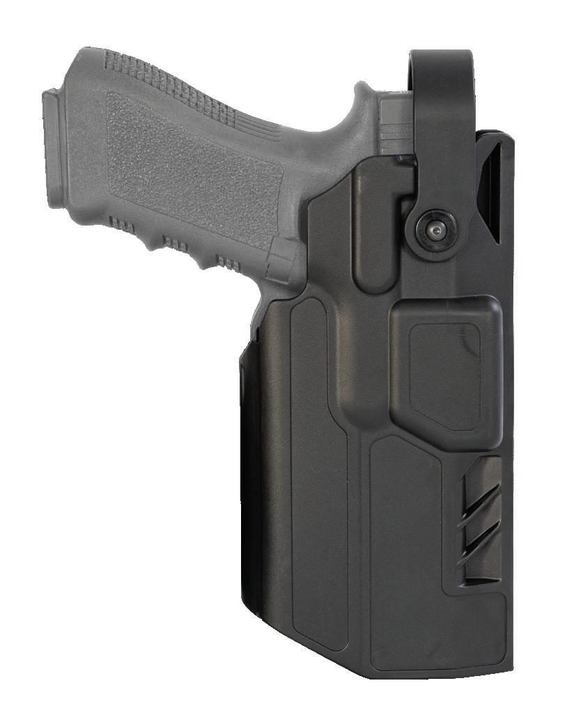 •Audible auto lock upon holstering allows user to ensure the weapon is properly holstered