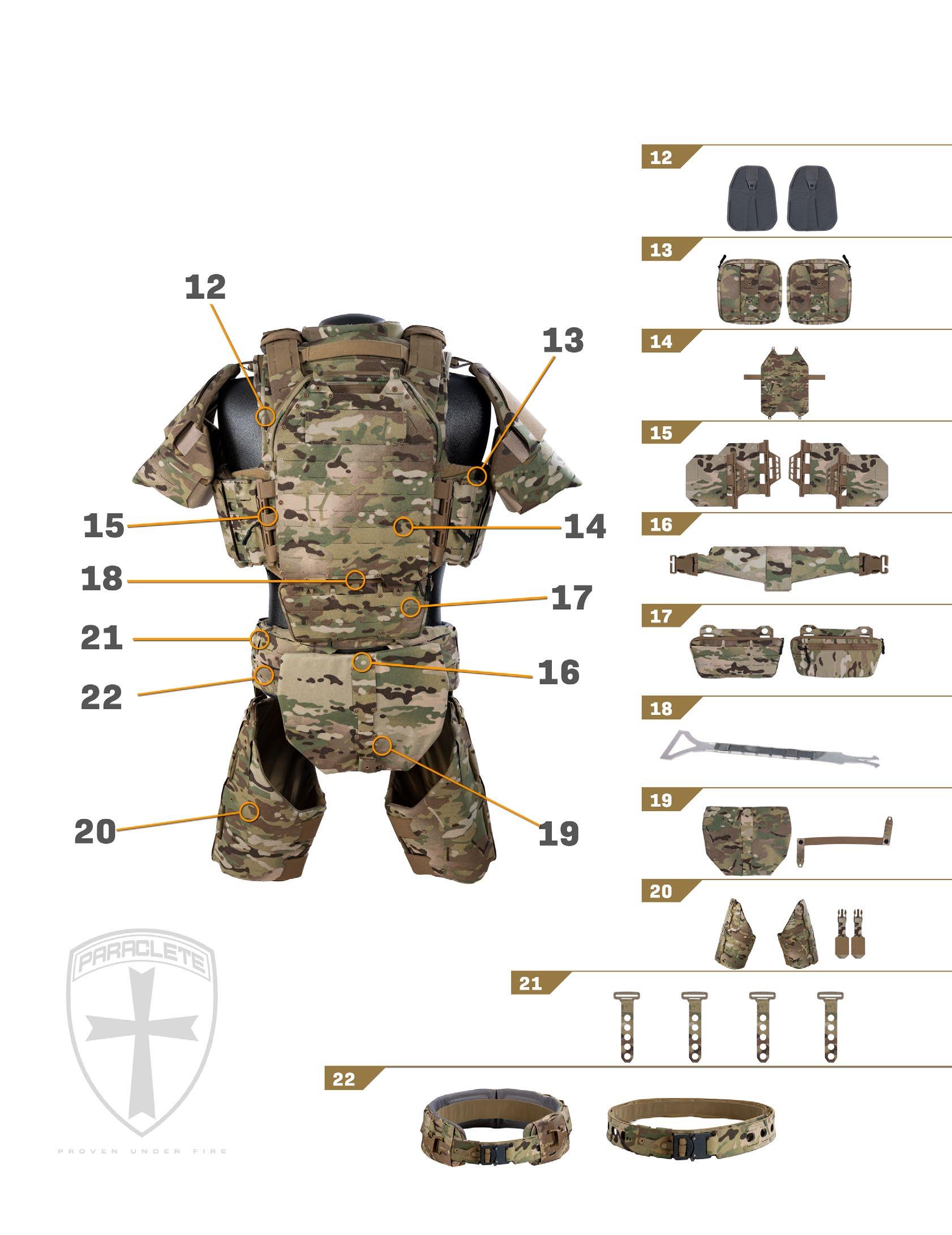 • Able to accept a 3-pocket wedge throat protector, and stow in a low ready position providing front yoke protection while not obstructing chin and neck mobility
