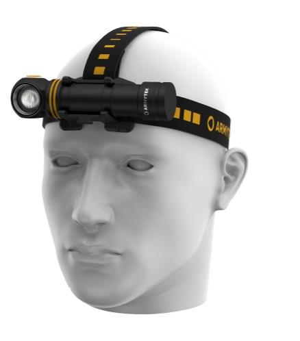 Enkel enhandsanvändning och pålitligt pannbandfäste. Ficklampan är lätt att montera, ta bort och kan roteras 180° i fästet.