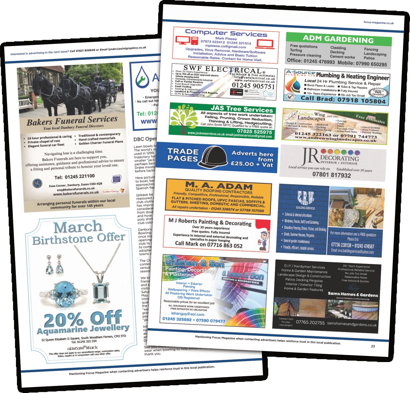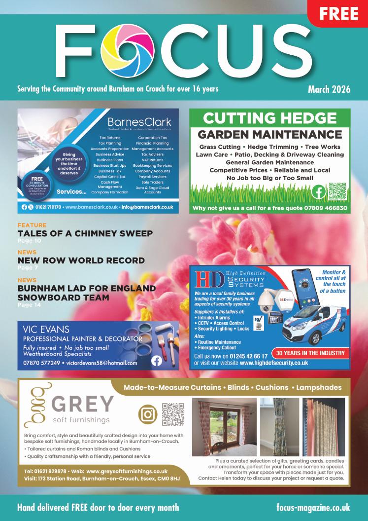 The Focus Magazine has also served the communities in Danbury, Bicknacre and Little Baddow for over a decade and Burnham on Crouch for 16 years.