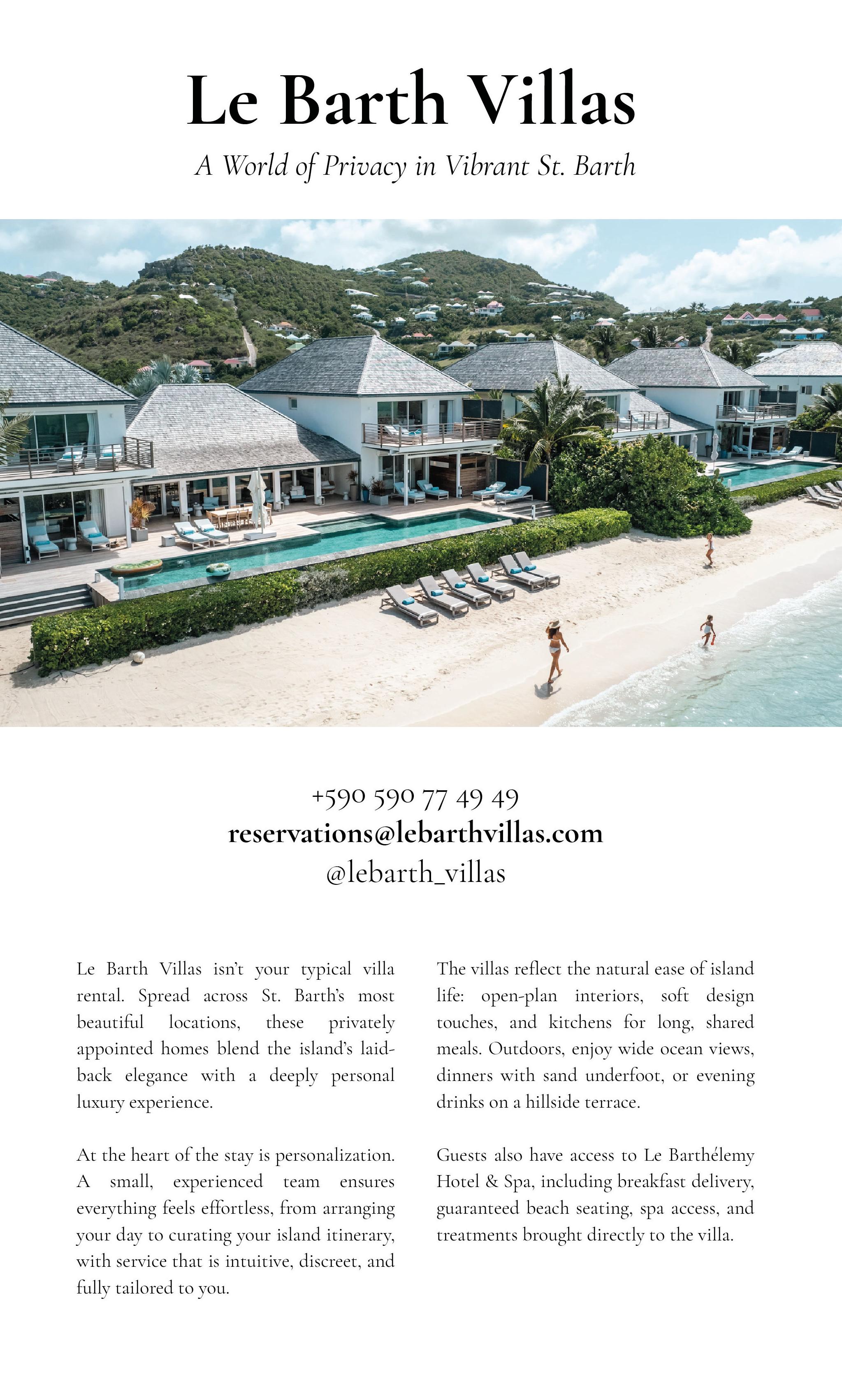 St. Barths never stands still. Each season brings fresh perspectives, new energy, and a creative spark that continues to redefine the art of island living.