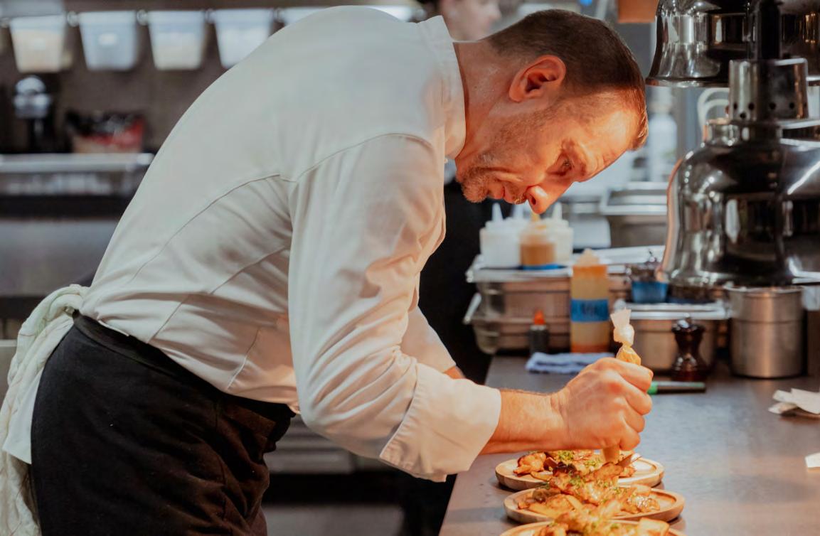 His cuisine in Megève honours regional ingredients with playful refinement: Savoyard classics elevated with lightness, seasonal vegetables treated with reverence, sauces crafted with a painter’s touch. Each plate is comforting yet surprising a signature balance that feels both nostalgic and new.