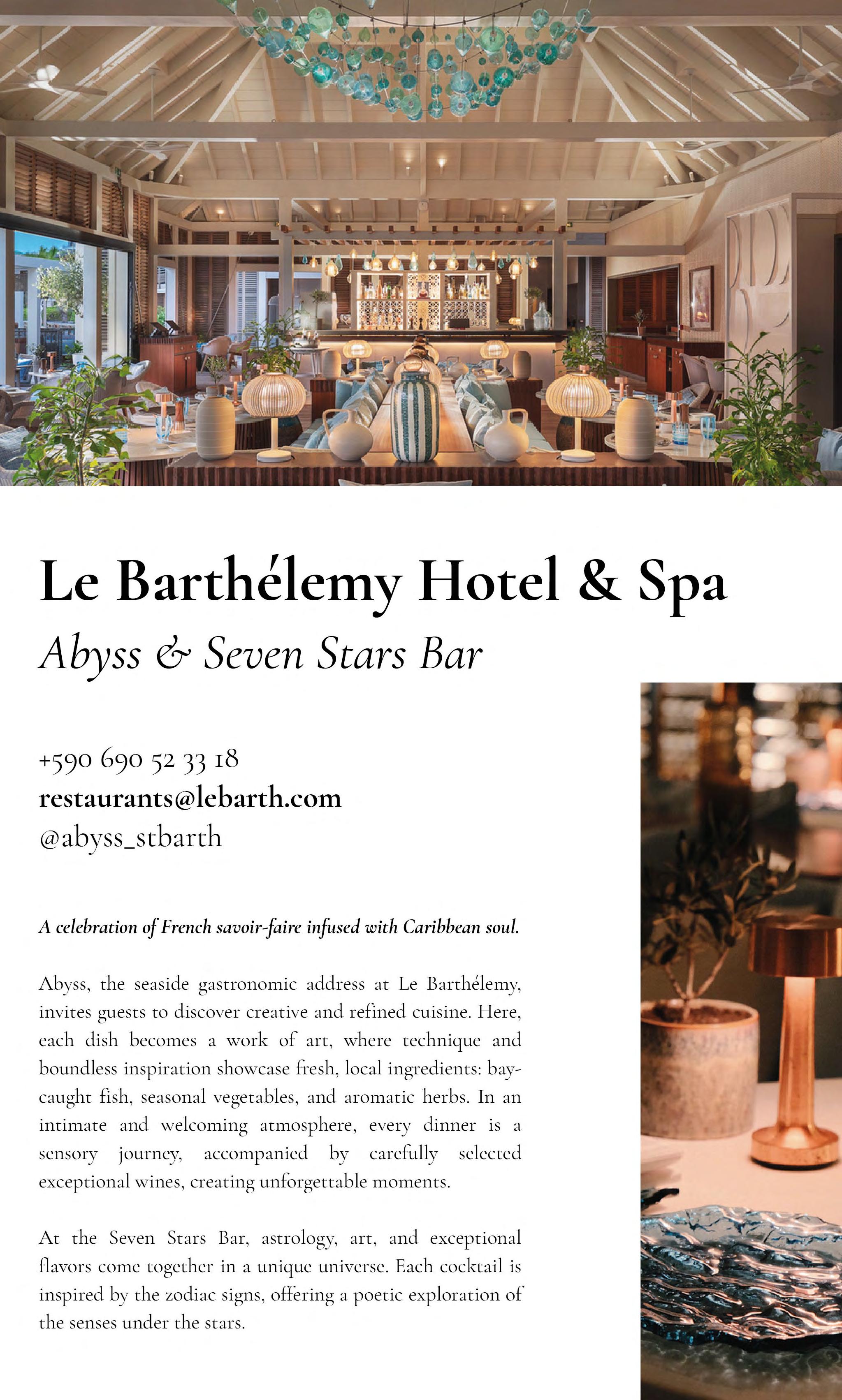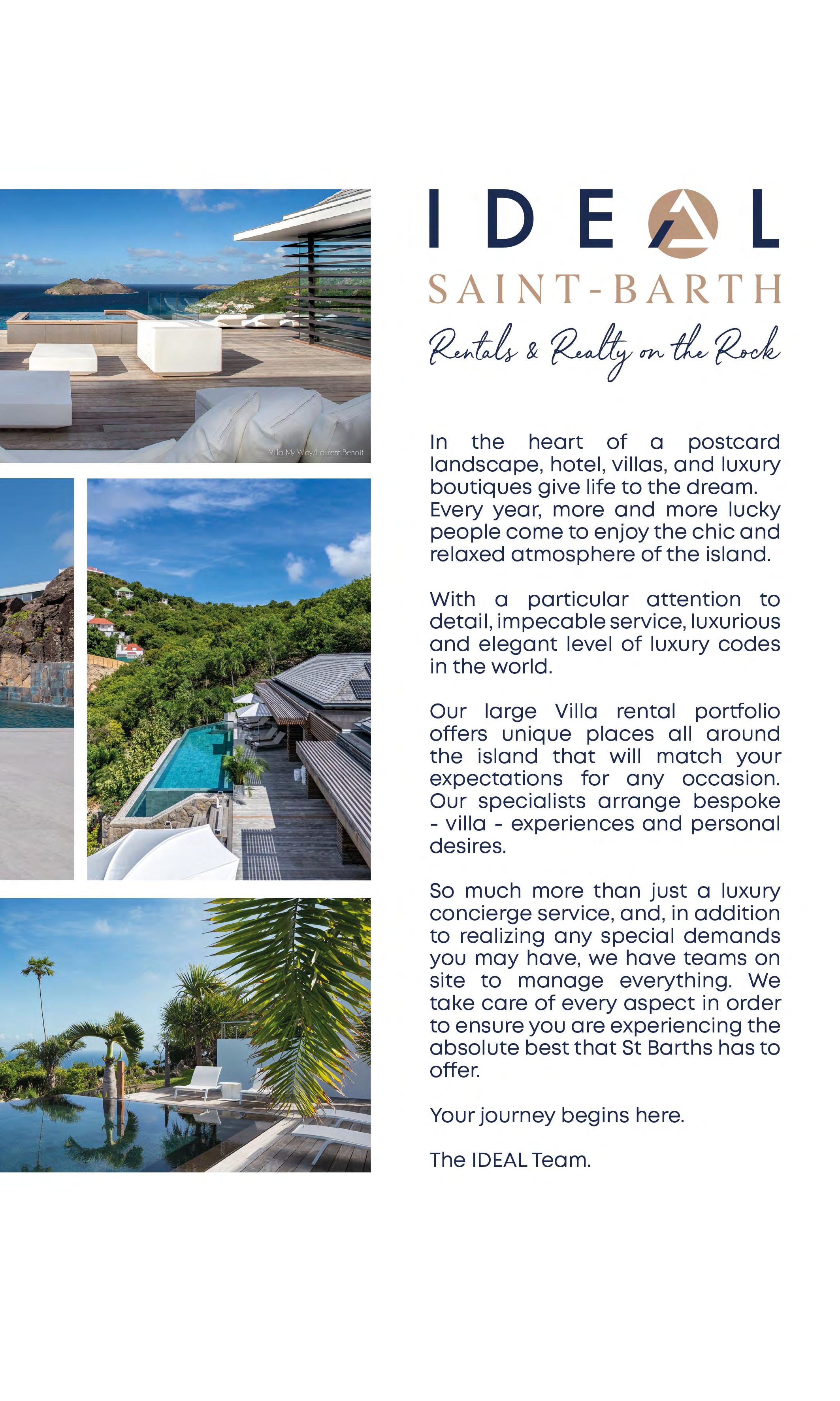 It is with great joy that I share these few words with you in this new issue of Pola. Saint Barths continues to shine thanks to the passion and commitment of all those who work to make our island a unique destination where authenticity and excellence meet. Our ambition is clear: to preserve the soul of Saint Barths while innovating to meet the expectations of today’s travelers. Every project we undertake aims to highlight our heritage, support our local partners, and strengthen the appeal of our territory. I would like to thank our partners and, of course, you—our readers—for your loyalty and your trust. Together, we are shaping the future of tourism in Saint Barths, with respect for our people, our environment, and our traditions.