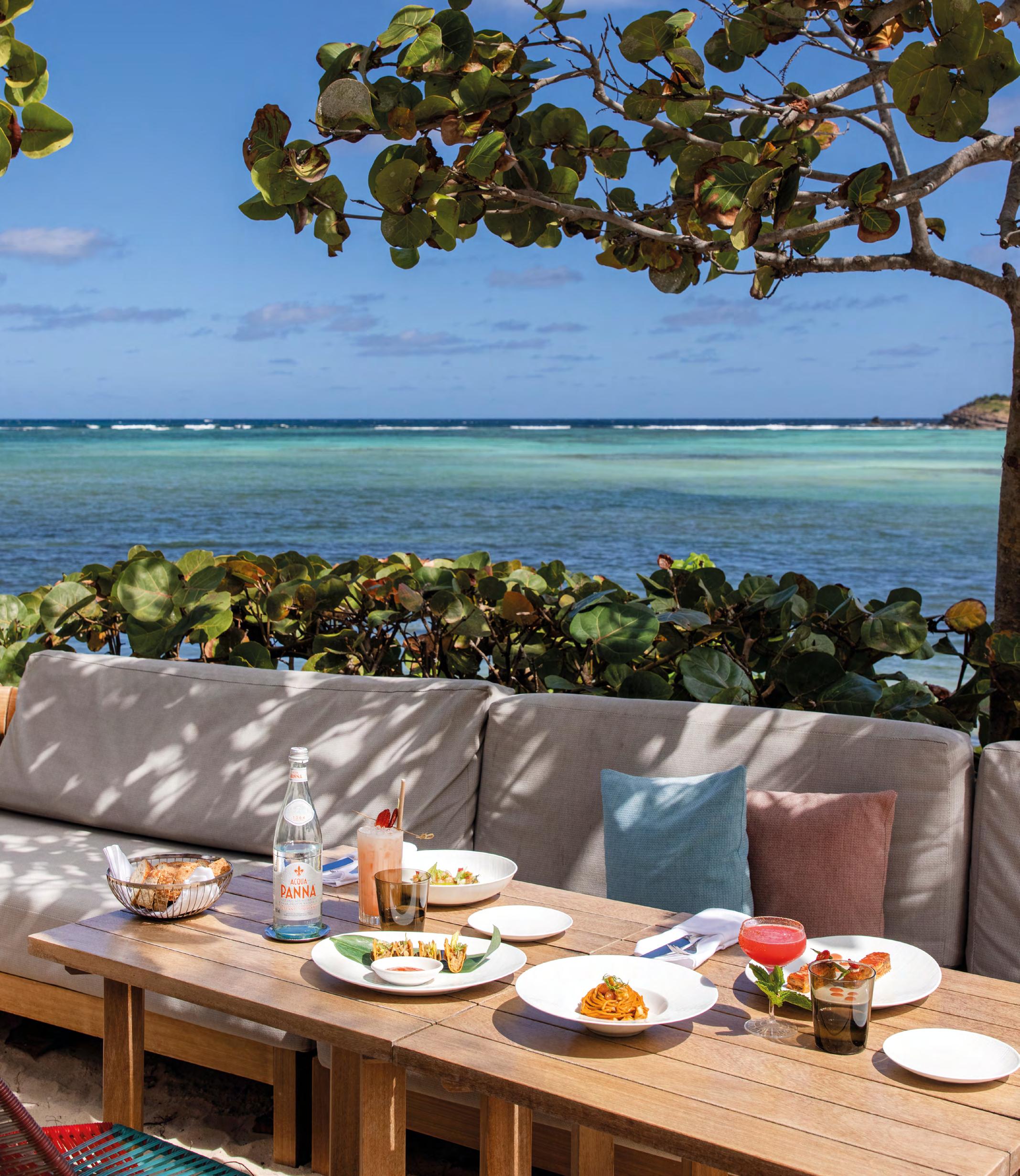 a relaxed al-fresco lunch at La Cabane, overlooking the ocean. The Cheval Blanc Spa, with its outdoor pavilion nestled in greenery, offers Guerlain rituals, in exclusivity in St-Barth.