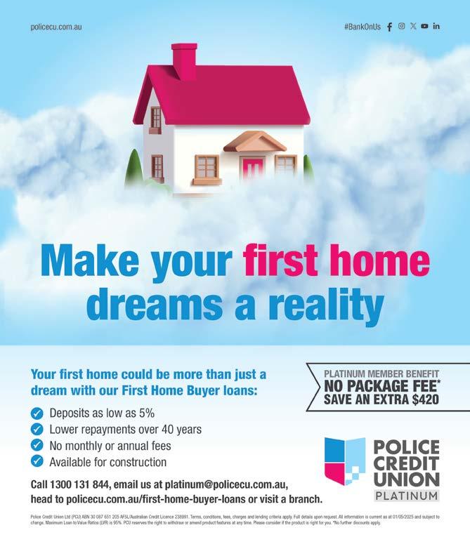 With a Police Credit Union First Home Buyer Home Loan, you can pay as little as a 5% deposit and take advantage of lower repayments over 40 years, making buying a first home more achievable As a Platinum member, you also save $420 with $0 package fees
