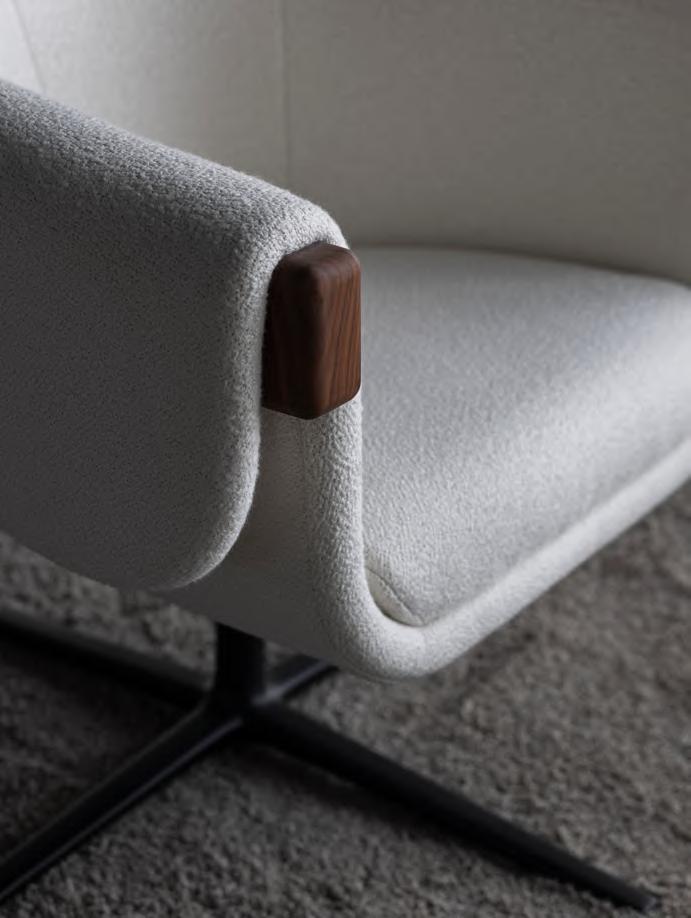 Bulo collaborated with Gensler, serving as a product design consultant, for the Monica lounge and Lucca side table. Gensler is a global architecture, design, and planning firm with 50 locations and more than 5,200 professionals networking across the world. Founded in 1965, the firm serves more than 3,500 active clients in virtually every industry. Gensler supports clients at every stage of the design cycle. Monica is a soft lounge chair with a solid wooden structure and a ‘draped’ upholstered soft shell resting on it. The duality of the chair is based on contrasts between hard and soft, static and fluid. The organic, soft shape provides a luxury comfort to the user.