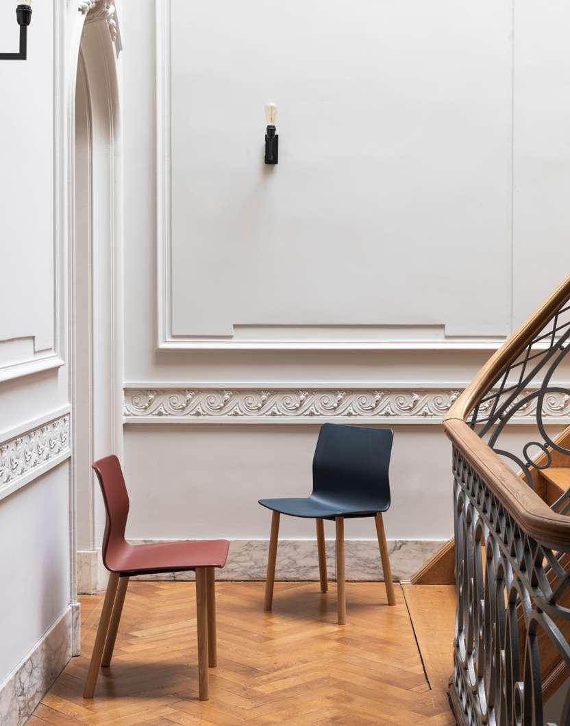 The SL58 chair was designed in 1958 by Stynen for the World Expo in Brussels. In 2016 Bulo reissued the chair in close collaboration with the Stynen family. The SL58 is available as a low lounge chair, a dining chair, an office chair with a 5-star base on castors, a counter height barstool and a high barstool. In 2018 we added a polypropylene version to the collection, allowing the chair to be used outdoors as well. This newest addition was named the ‘SLL18’.