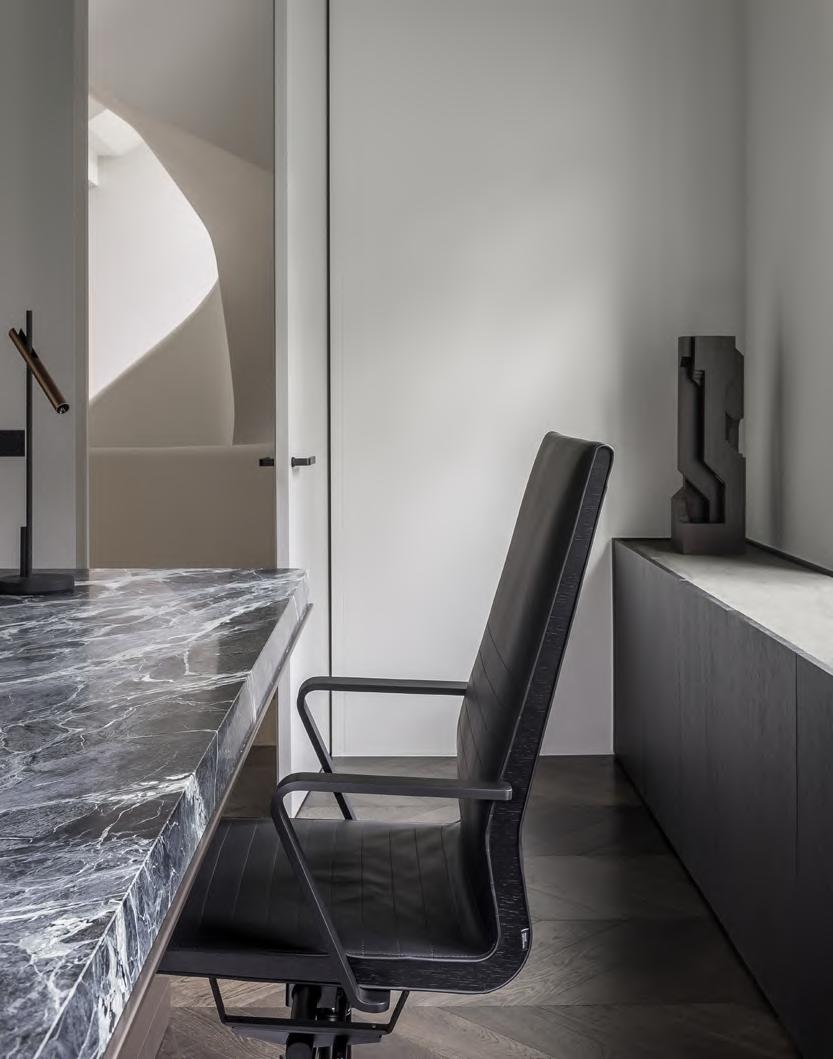 interesting collaboration between designer, manufacturer, client and technology. Van Reeth’s approach to create a more organic and humanistic environment to work in resulted in a perfect harmony of soft shapes, rich materials and cutting edge technology.