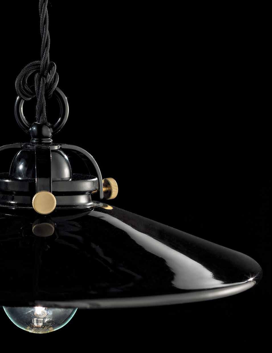 UN EQUILIBRIO PERFETTO: IL NERO CHE GENERA LUCE. LE SUPERFICI LUCIDE E L’ASSENZA DI DECORI PERMETTONO DI COLLOCARE QUESTA LAMPADA IN AMBIENTI DIFFERENTI.
