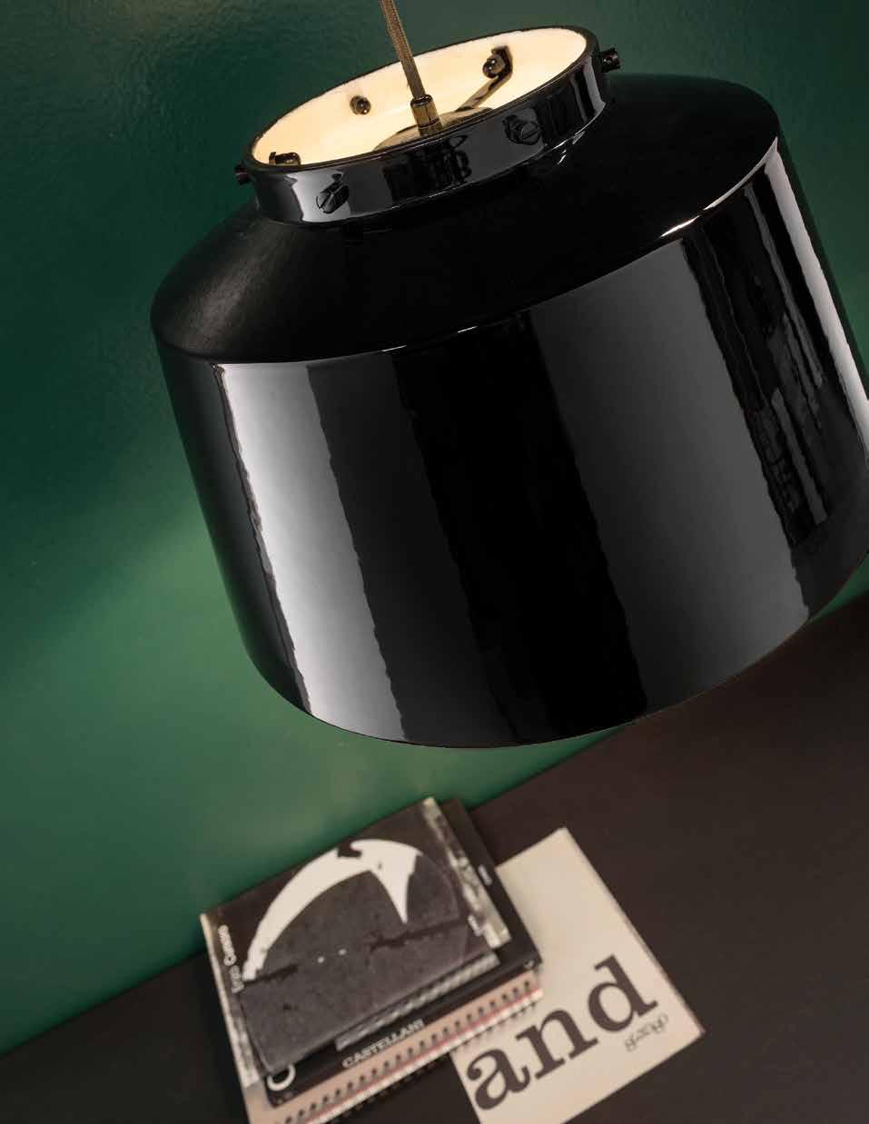 A PERFECT BALANCE: WHEN BLACK PRODUCES LIGHT. THE SHINY SURFACES AND THE ABSENCE OF DECORATIONS ALLOW THIS LAMP TO BE PLACED IN STYLISTICALLY DIFFERENT ENVIRONMENTS.