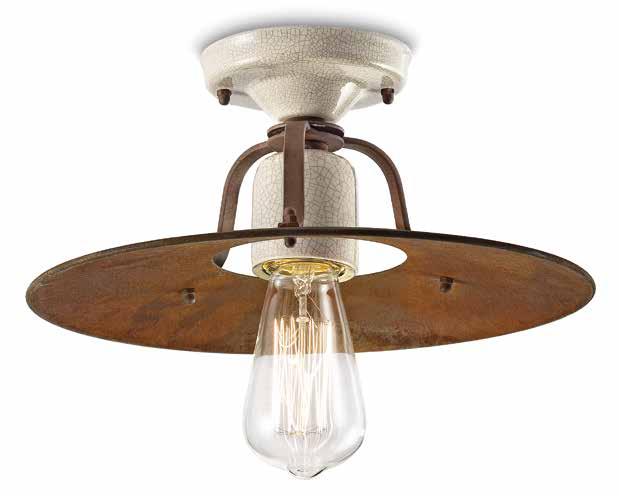 CERAMICS BLENDED WITH OXIDIZED METAL: A CEILING LIGHT UNIQUE IN ITS STYLE, WITH AN ANTIQUE FLAVOUR TO IT, IDEAL FOR THE MOST REFINED AMBIENCES.