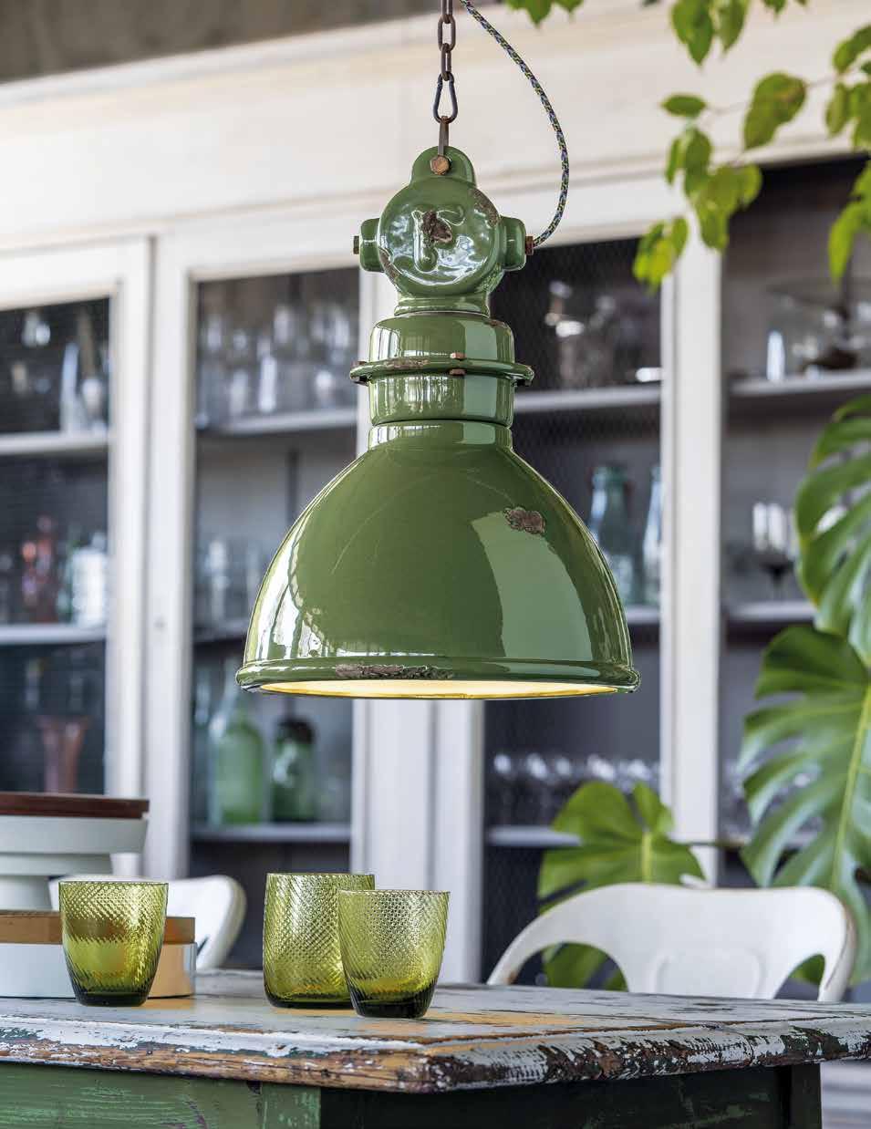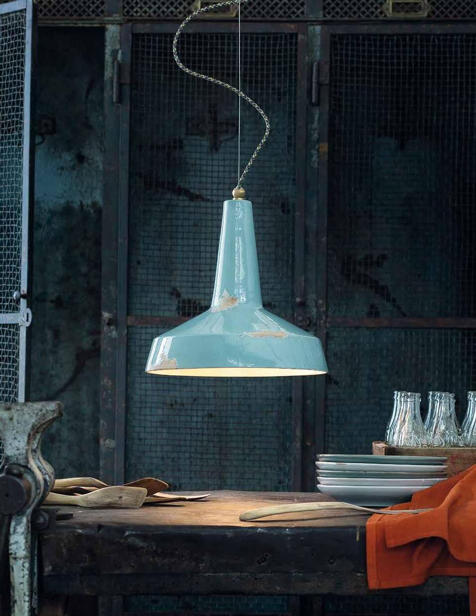 SEMPLICE E SENZA TEMPO, LA LAMPADA DAI COLORI POLVEROSI E DAL SAPORE VISSUTO SI ISPIRA ALLO STILE RUSTICO AMERICANO. LUCE PURA PRIVA DI SCHERMATURE.