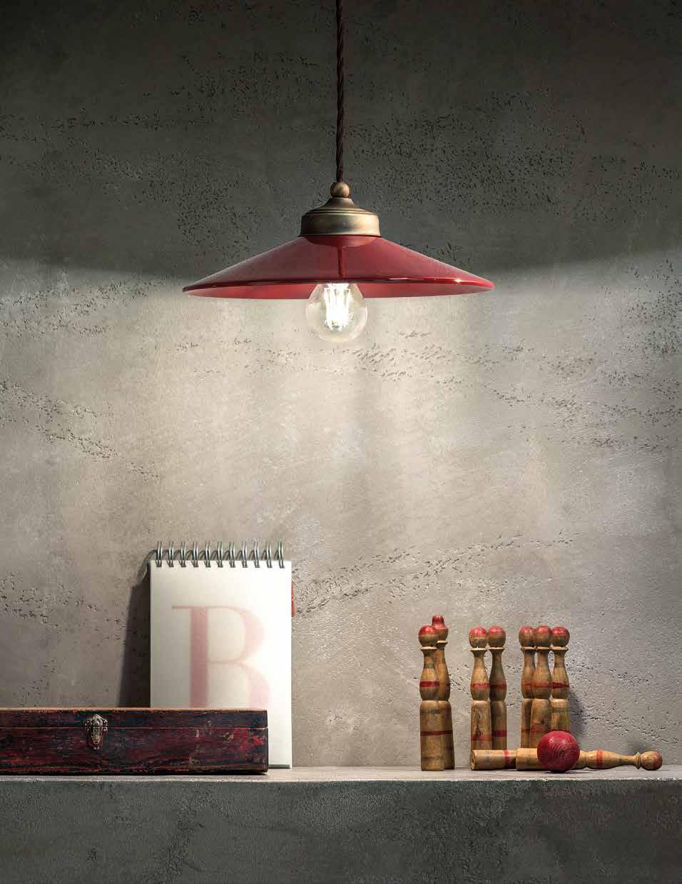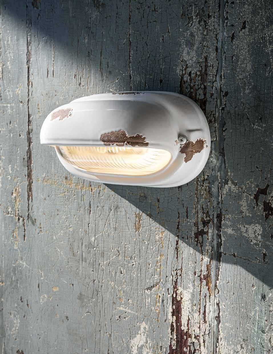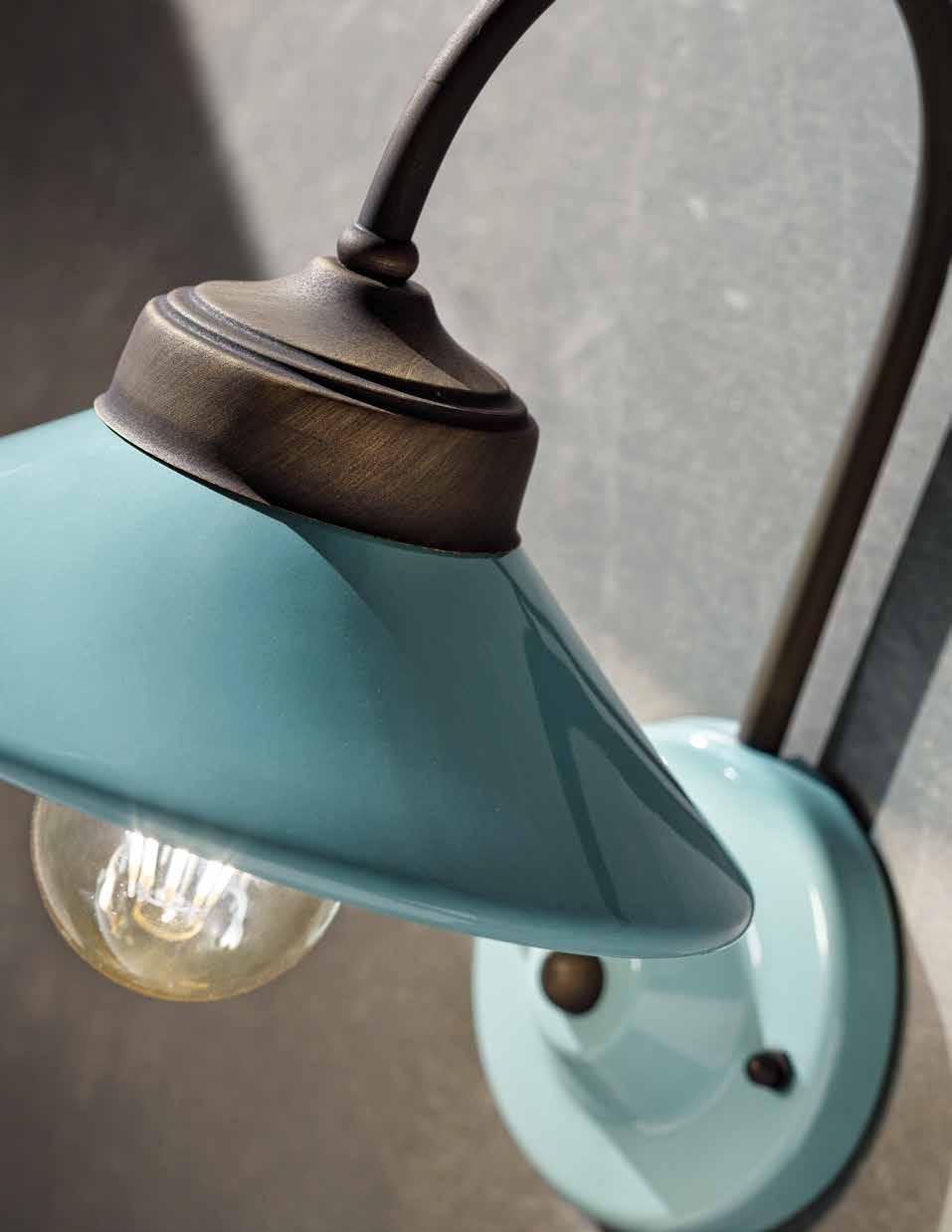 THROUGH THE USE OF COATINGS THAT ARE ABLE TO GIVE THE SURFACE A WORN TACTILE AND VISUAL APPEARANCE AND THE USE OF RETRO COLOURS, EVEN WALL LIGHTS WITH THE MOST INNOVATIVE LIGHTING SOLUTIONS CONVEY A CERTAIN NOSTALGIC FLAVOUR.