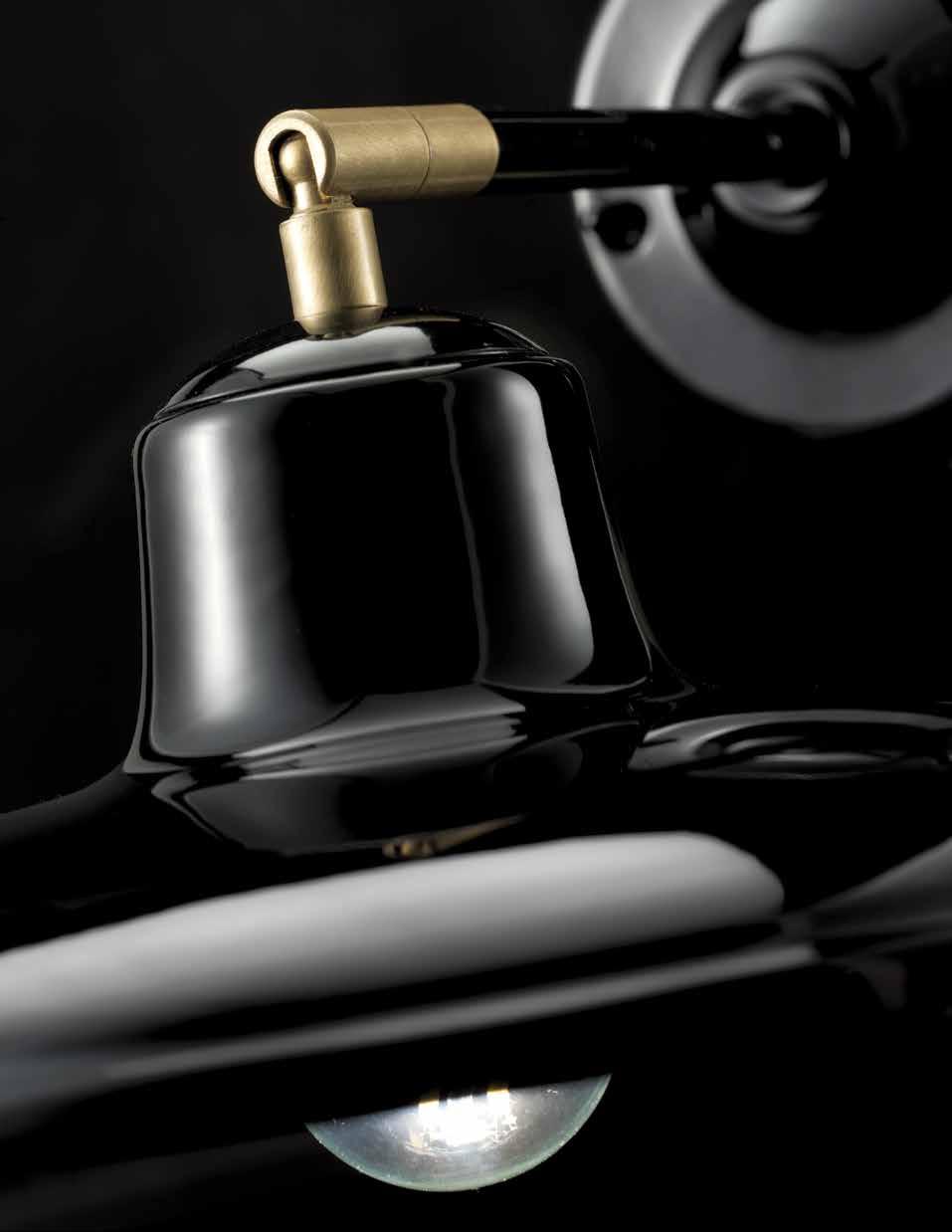 THE SATIN FINISH BRASS CREATES AN INTERESTING CONTRAST WITH THE GLOSSY CERAMIC. BLACK AND WHITE COLOURS CREATE A RETRO AND, AT THE SAME TIME, MODERN EFFECT.