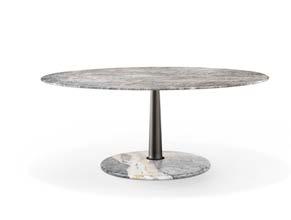 Structure Base and table top in marble or wood. Central element made of a conic aluminum column.