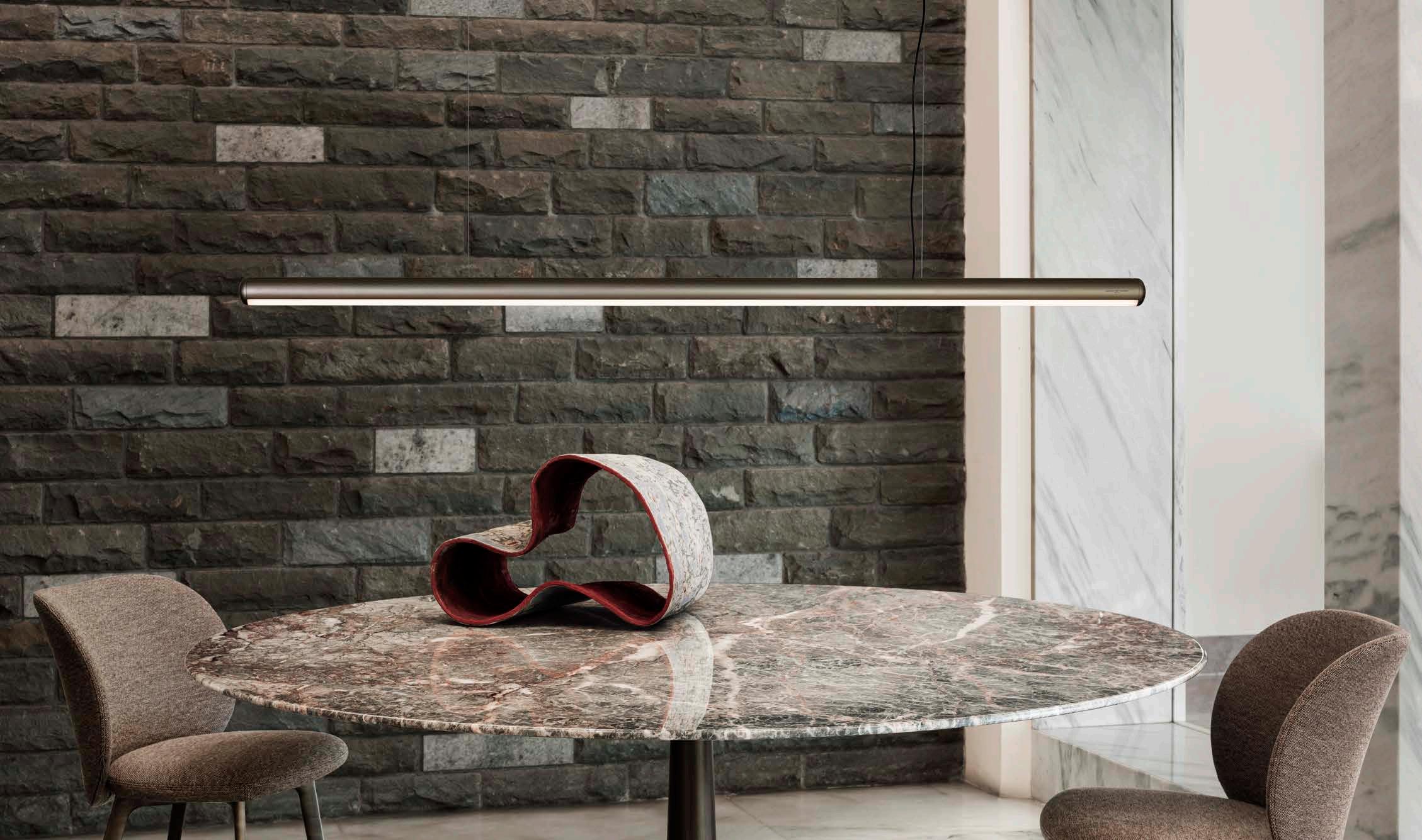The essence of the sophisticated form of a lighting fixture is expressed in a custom-made proposal. Besides being available in standard sizes for the single version, Tratto becomes a modular element that can be repeated infinitely. Elegance, versatility and discreet presence define the design of a product that is suitable for both residential and workspace solutions.