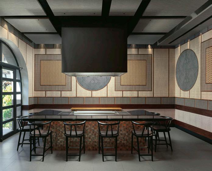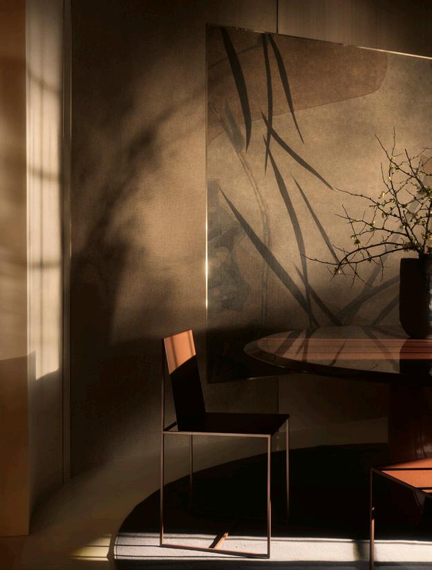 La interacción de tonos profundos con toques brillantes proporciona una sensación de calma y reflexión, al tiempo que crea un entorno totalmente integrado y envolvente que inspira la conversación.