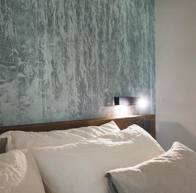 For interiors, Glamora’s wallcoverings such as Anacapri, Agua de sueño, Mediterraneo, Arsenic and Selva, realised on GlamTrace in cellulose fibre nonwoven fabric, were selected for their soothing tones and patterns that evoke the surrounding nature. These subjects, positioned in rooms with privileged viewpoints, enrich the environments with a tactile and visual dimension, creating unique atmospheres that invite relaxation and contemplation. Each suite presents a theme related to the habitat around it, explored through natural motifs or abstract patterns that reflect the local flora and fauna.