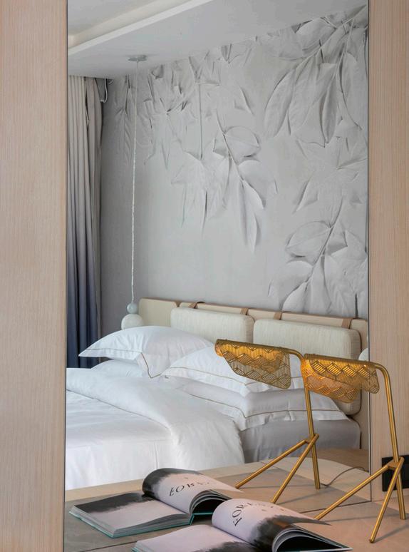 Èdoc architects utilizó hábilmente algunos revestimientos murales Glamora con texturas sofisticadas y motivos inspirados en la naturaleza, que contribuyeron a crear una atmósfera de paz y armonía.