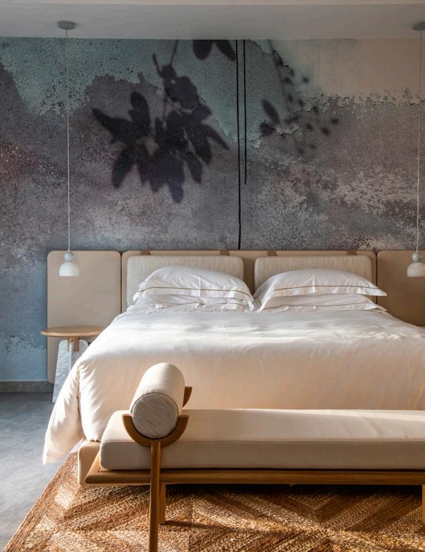 A veces evocan una ligera brisa marina que mueve delicadas briznas de hierba silvestre, otras veces la quietud escultural de las hojas que se proyectan sobre las paredes o parecen emerger de ellas. Los tonos neutros dan a las habitaciones un carácter distintivo y una sensación de lujo tranquilo, en consonancia con el toque ligero y el servicio discreto y personalizado, donde cada detalle ha sido pensado.