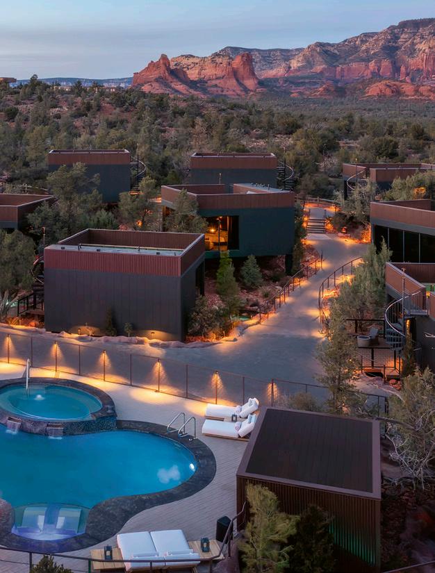 The resort is situated on the border of Red Rock State Park. The concept is based on creating a true symbiosis with the colours, light and shadows sculpted by the impressive red sandstone peaks, considered by some as capable of unleashing very powerful energy vortexes.
