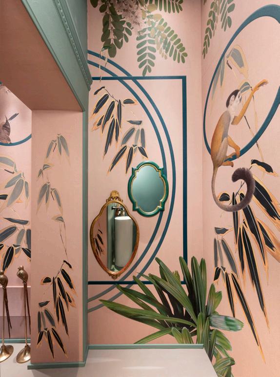 Una poética mezcla de diferentes flora y fauna, donde parece resonar el canto de un pájaro curioso y los rápidos movimientos de un mono oculto entre las ramas y hojas de una exuberante vegetación. Una sensación que se multiplica y expande gracias a los espejos antiguos colgados en las paredes. Ligereza, tonos discretos y a la vez preciosos expresan armonía y energía juntos.