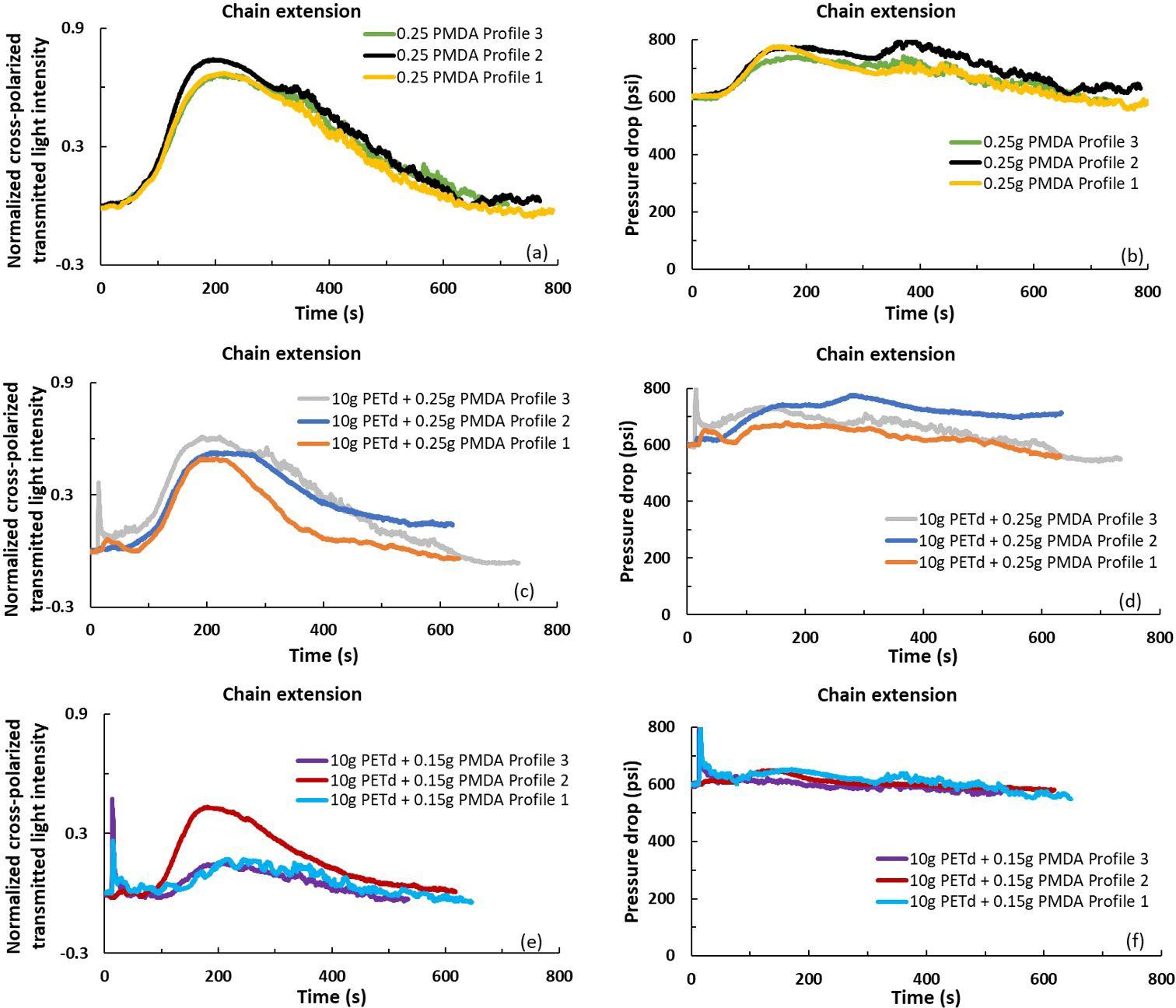In-line rheo-optical characterization of PET hydrolysis and chain extension during extrusion