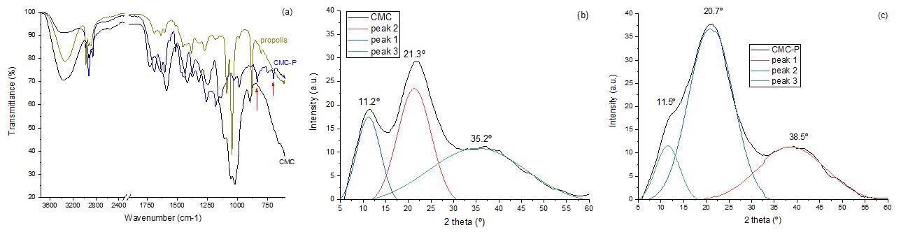 Superabsorbent biodegradable CMC membranes loaded with propolis: Peppas-Sahlin kinetics release