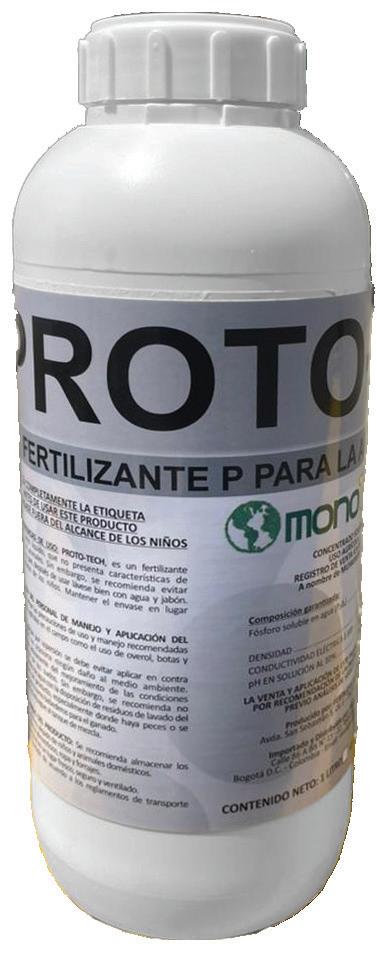 PROTO TECH Gracias a su elevada concentración en fósforo es ideal para la generación de fitoalexinas de la planta, el desarrollo radicular, provocar una buena floración y cuaje del fruto.