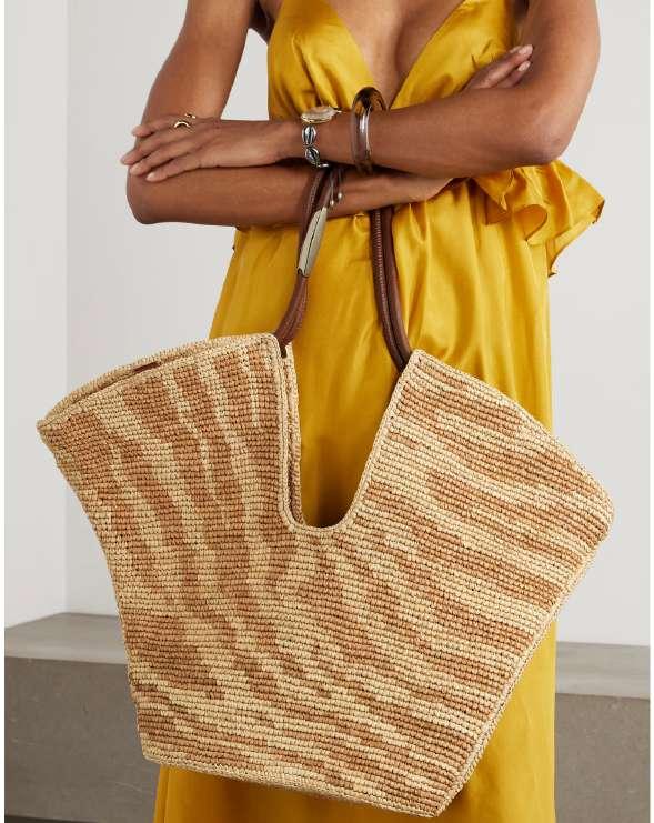 Medium New Bobby bag in wicker and chestnut calfskin, removable and adjustable strap.