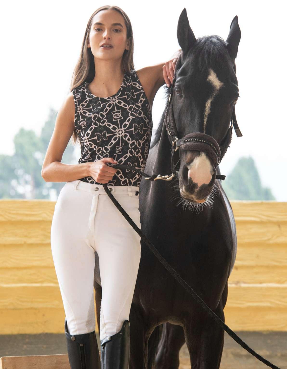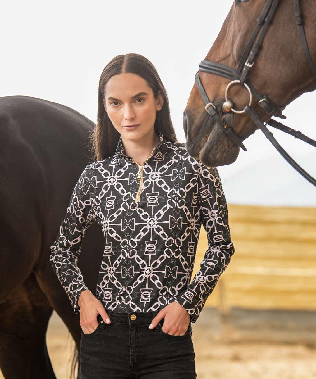 The Polo-Shirts for riding and other sports, blend the classic look of the traditional polo-shirt with a fresh approach to Equestrian-style. Ideal for riding or any other sports, or just for pretty casual outfits! Tailored and fitted, made in a high-tech textile. Designed with iconic Equestrian prints and made in a high-tech fabric. The polo-shirts are the perfect complement for sports, adventures and ride-leisure. Optimal performance in Equestrian-style.