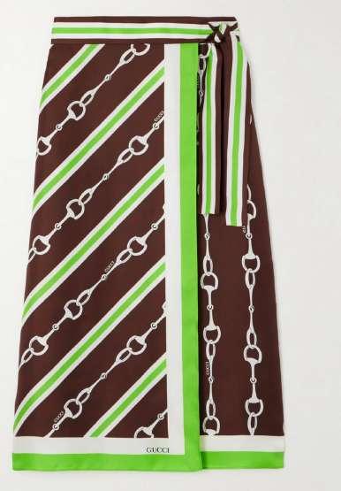 Style your beach look with a stylish printed silk-twill wrap skirt and combine the oneshoulder chain-embellished swimsuit for an effortless look.